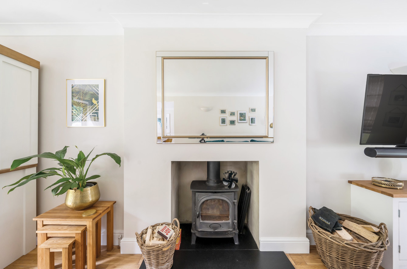 Your principle reception space is a large L-shape double aspect sitting/dining room with wooden flooring throughout plus bi-folding doors onto the garden, feature central wood burning stove and attractive sash windows to the front.