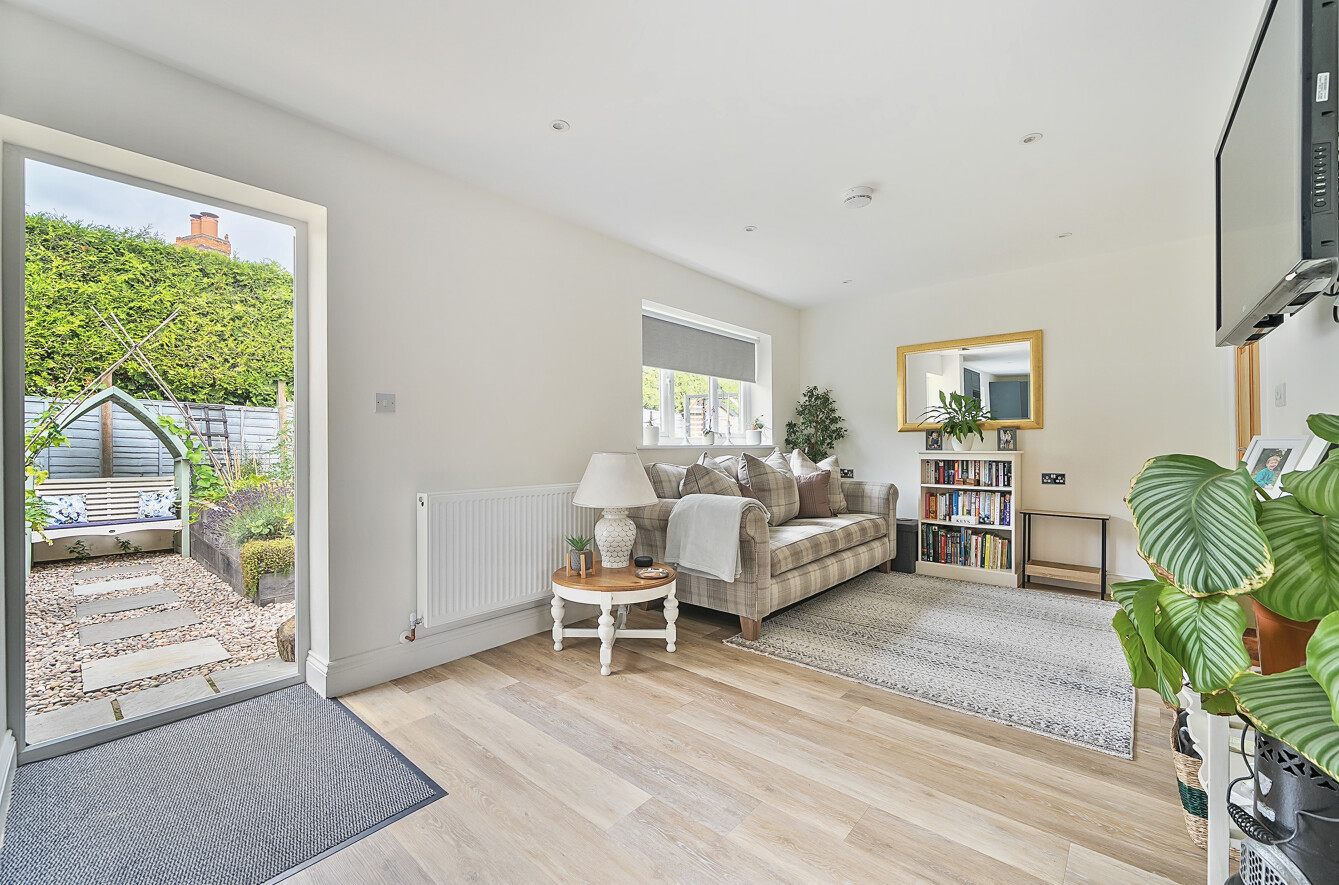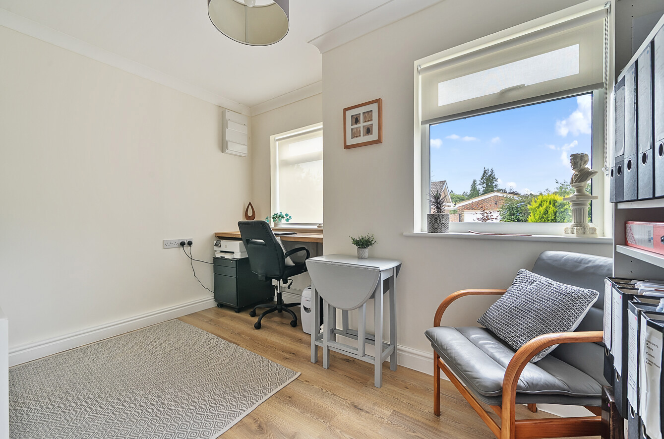 The gardens are level and wrap around the bungalow; to the front is an established hedge with two formal brick raised flower beds. A gate next to the front door opens up to a wide side garden, predominantly laid to lawn with mature floral borders and a number of fruit trees (including plum, apple, crab apple and quince), this lawn wraps around the rear in a continuation of lawn and flower beds. A set of formal raised vegetable beds plus ornamental pond then lead onto a fine Indian sandstone paved terrace, providing the idea spot for dining and entertaining. To the end of the garden are a set of external stair leading to an additional loft storage area.