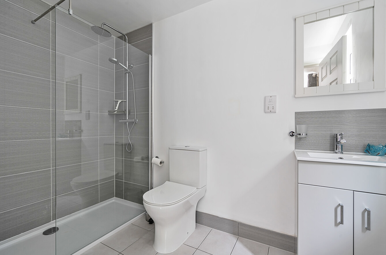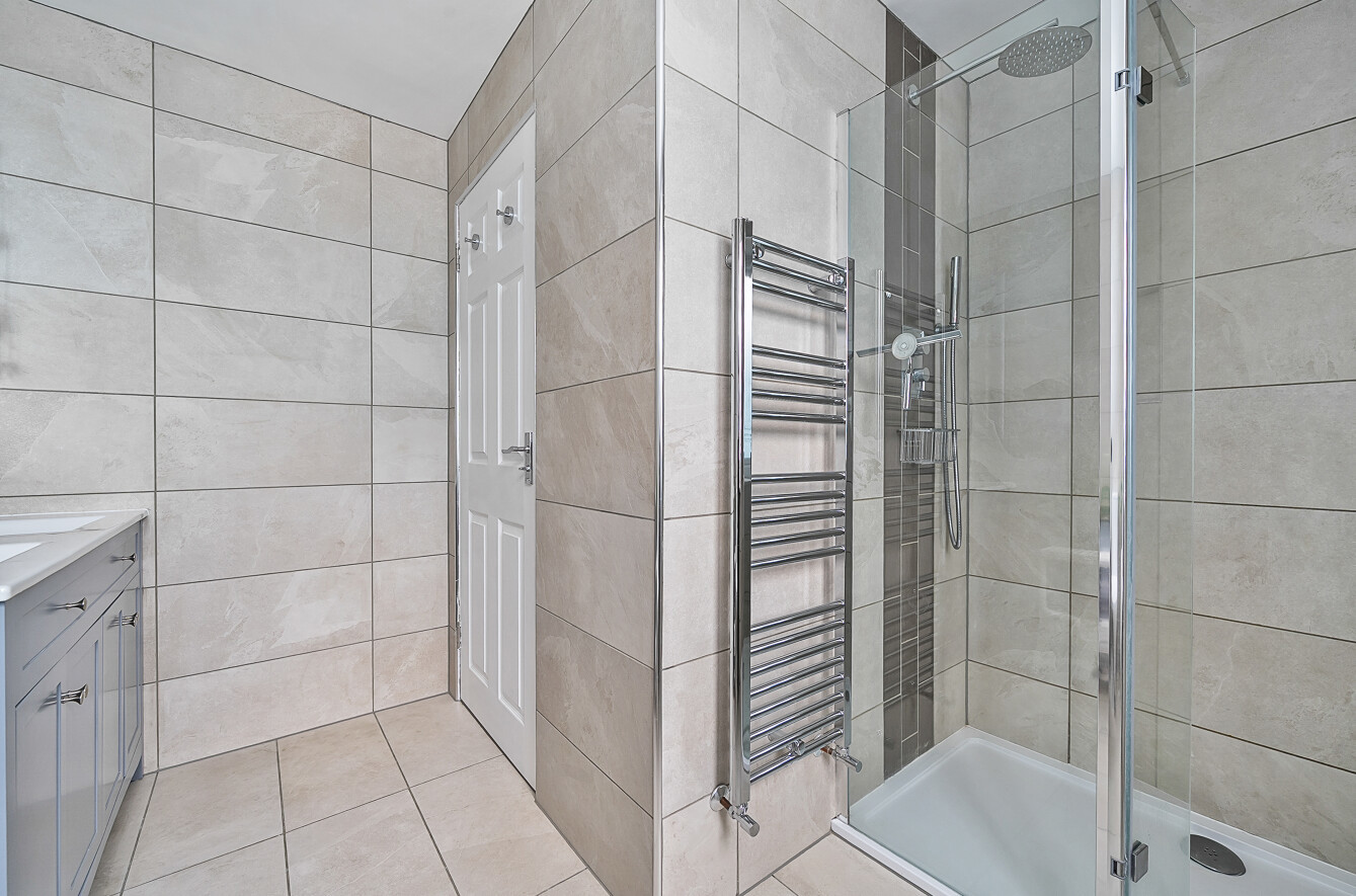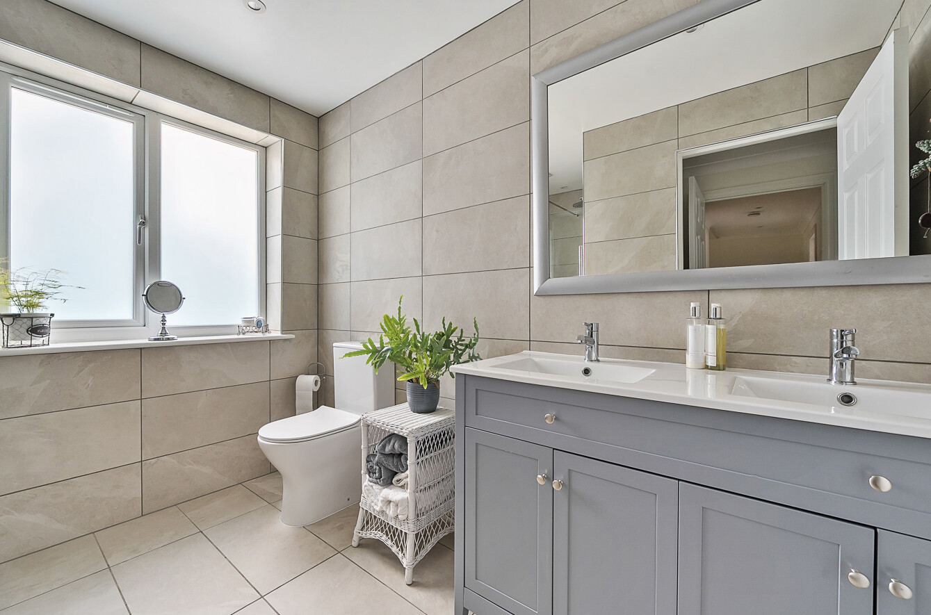 The master suite sits at the far end of the hall, and is a generous double bedroom with dressing room and en suite shower room featuring twin sinks (with concealed shaving points with the vanity cupboards below) and a walk in shower. There is also a guest double bedroom with en suite shower room. Two further double bedrooms and a 6th single bedroom/study complete the bedroom accommodation. These are serviced by both a modern family bathroom and a separate shower room providing choice and flexibility.