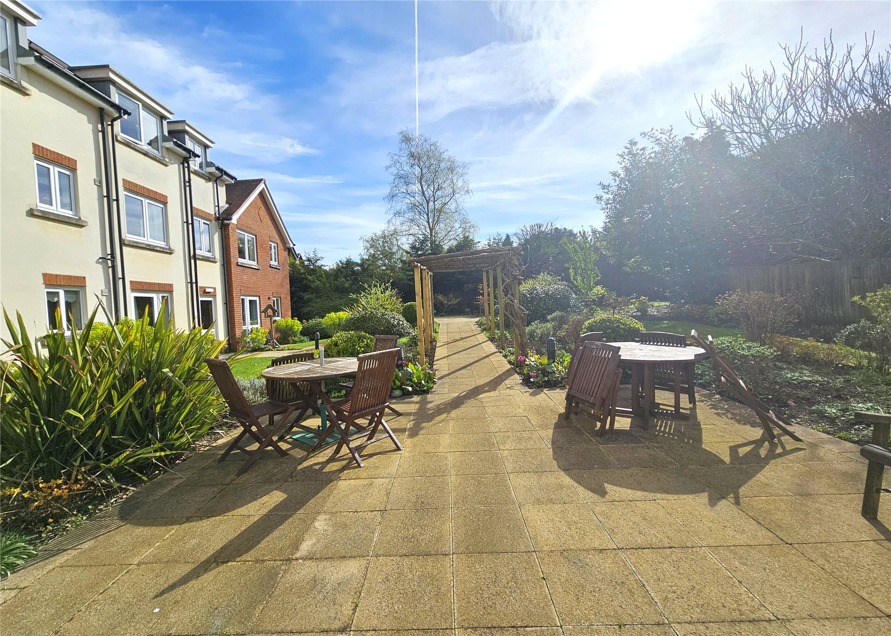 Delightful communal gardens, beautifully landscaped to provide various areas of interest in addition to large patio area