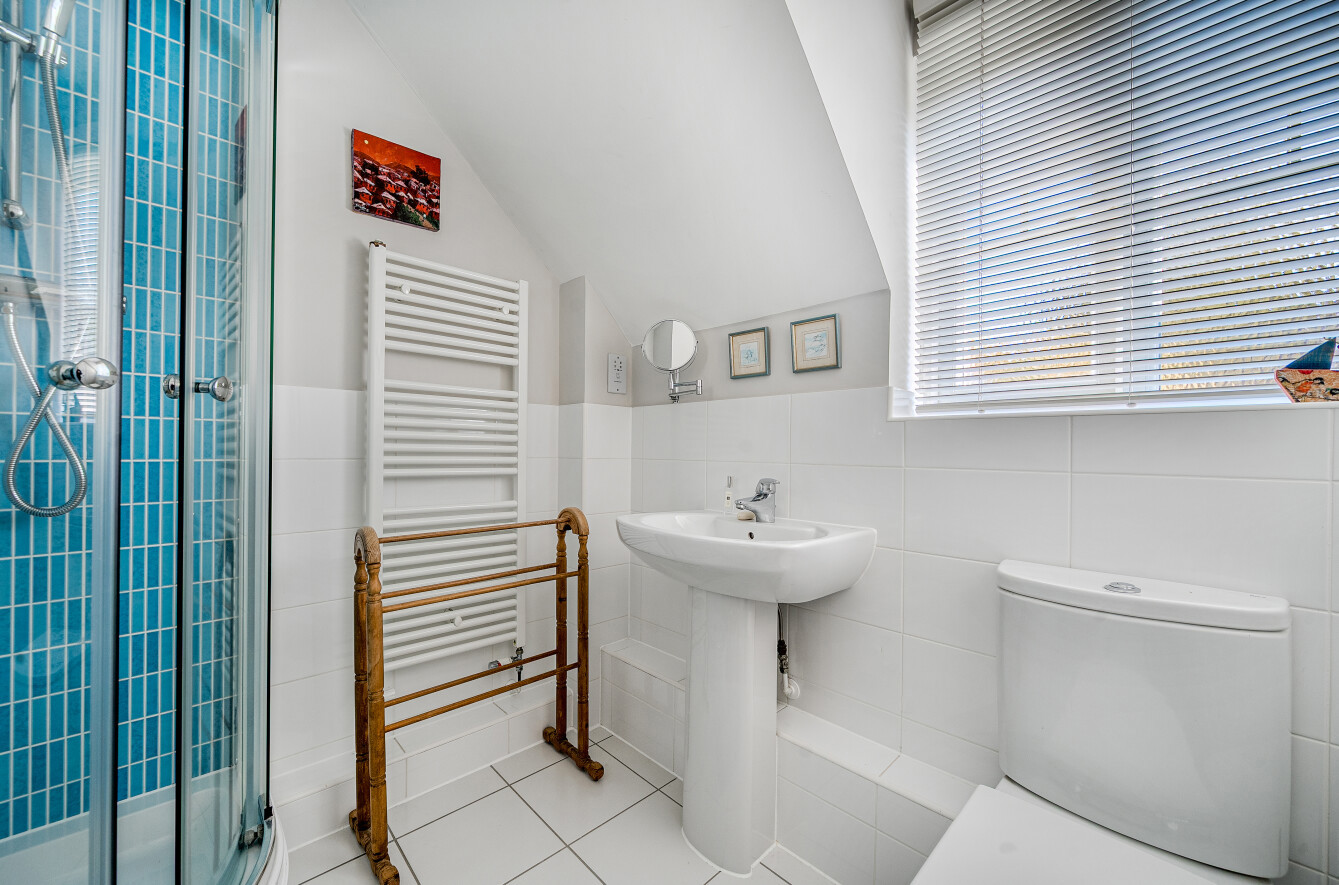 To the first floor are two double bedrooms with built in wardrobes and en suites; one bathroom, one shower room.