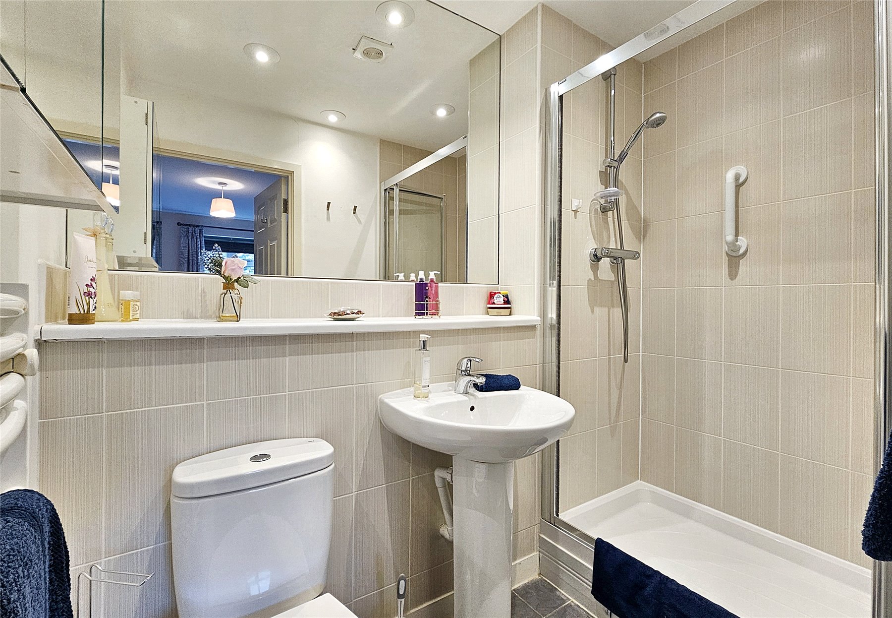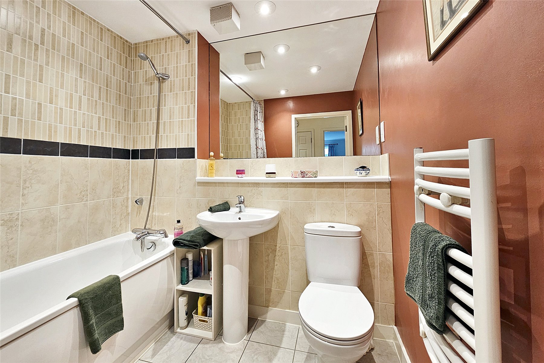 The bedrooms sit to the other side of the apartment with the large master bedroom benefitting from built in wardrobe and an en suite shower room. There are two further bedrooms, one of which has patio doors opening out and would makes a perfect study/reading/hobby room. A contemporary family bathroom completes the accommodation.