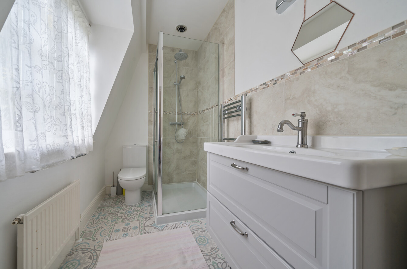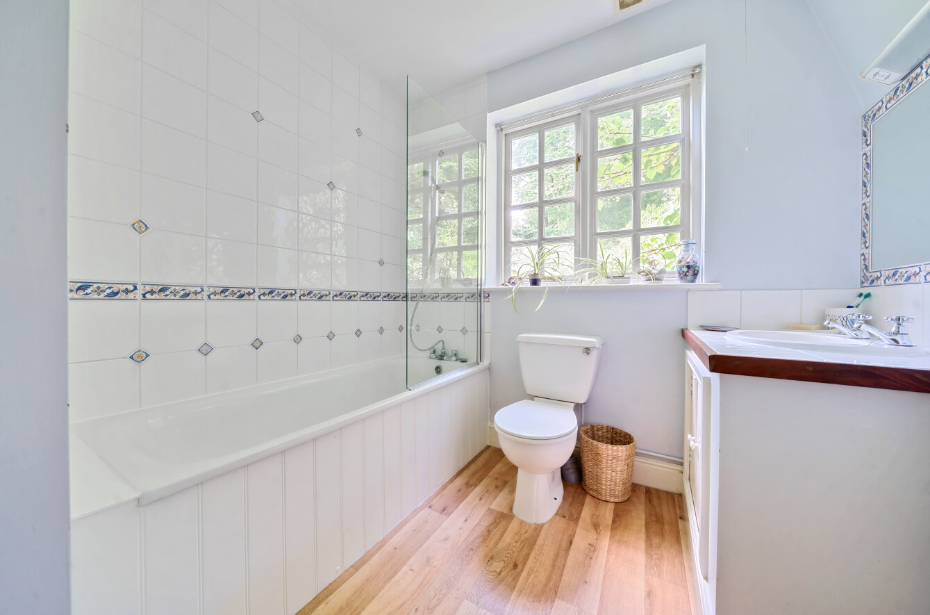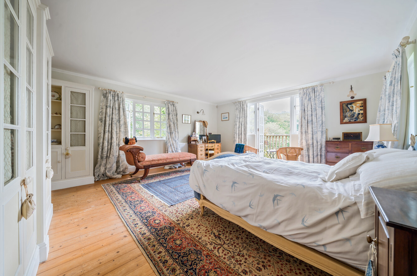 The leafy vistas continue upstairs where a light principal bedroom suite stretches out across the full width of the house and with its private balcony overlooking the grounds creates a calming retreat. Fitted wardrobes provide plenty of storage and a notable ensuite. Along the hallway three additional double bedrooms all with built in wardrobes, one with its own ensuite shower room, while the others share a modern family bathroom.