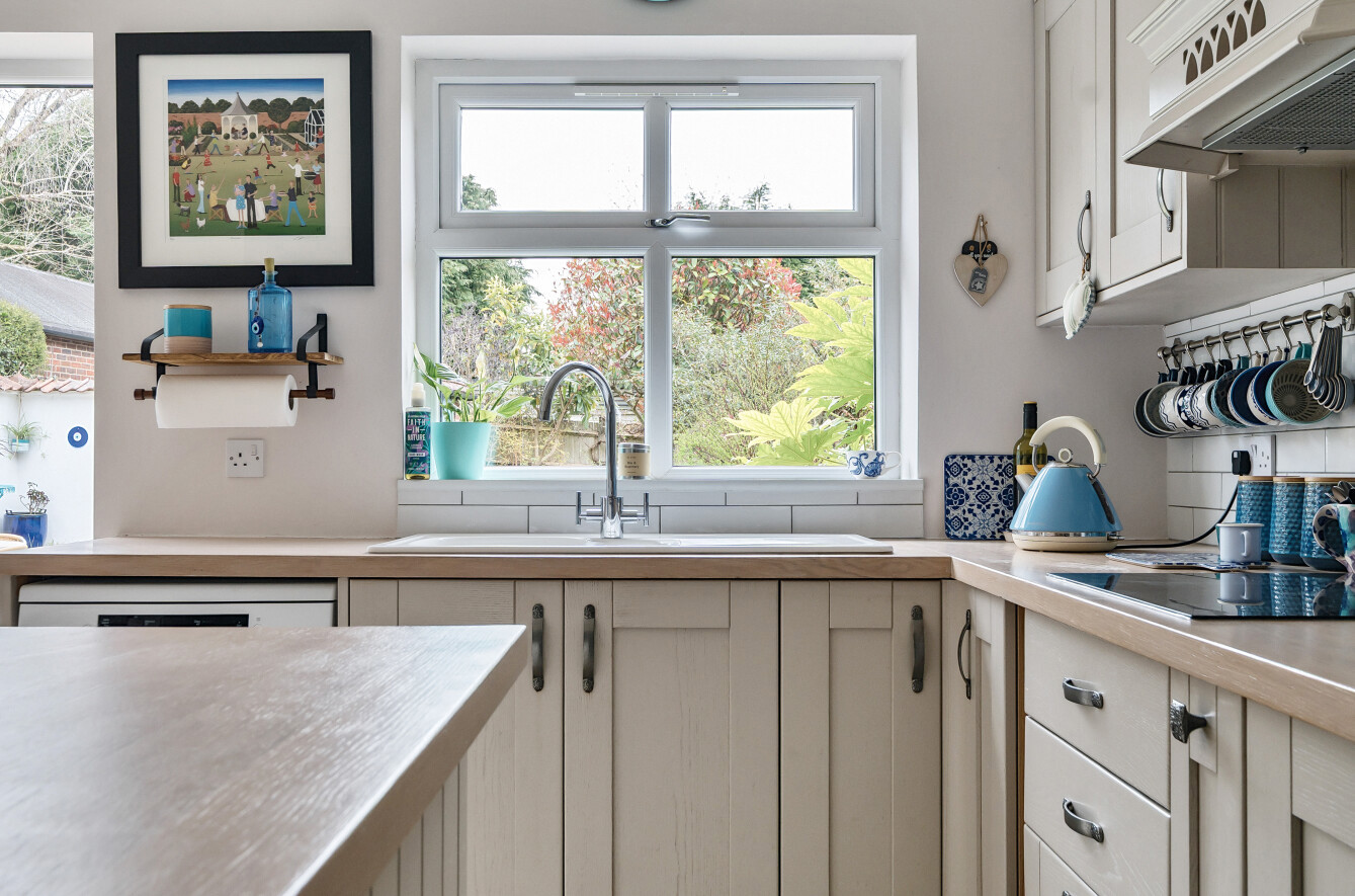 At the heart of the home lies a truly stunning open-plan kitchen, dining, and family room. Thoughtfully designed and beautifully finished, this space is flooded with natural light thanks to large glazed doors and a striking full-height picture window overlooking the rear garden. The kitchen itself is appointed with elegant shaker-style units, Limed Oak worktops, and a central island offering ample preparation space and additional storage. There is plenty of room for a full-sized dining table, while a snug area creates a relaxed spot for lounging or entertaining, making this a perfect all-day living space.