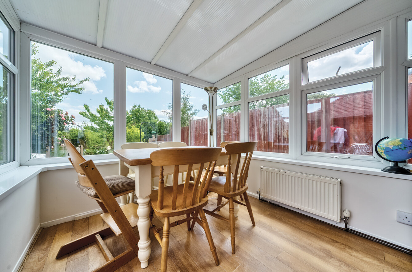 The real highlight of the property is the private, south-facing rear garden, thoughtfully arranged over three levels and mainly laid to lawn. It offers patio seating areas, a garden shed, and a greenhouseideal for green-fingered buyers. A purpose-built outbuilding currently serves as a utility room, further enhancing the functionality of the home.