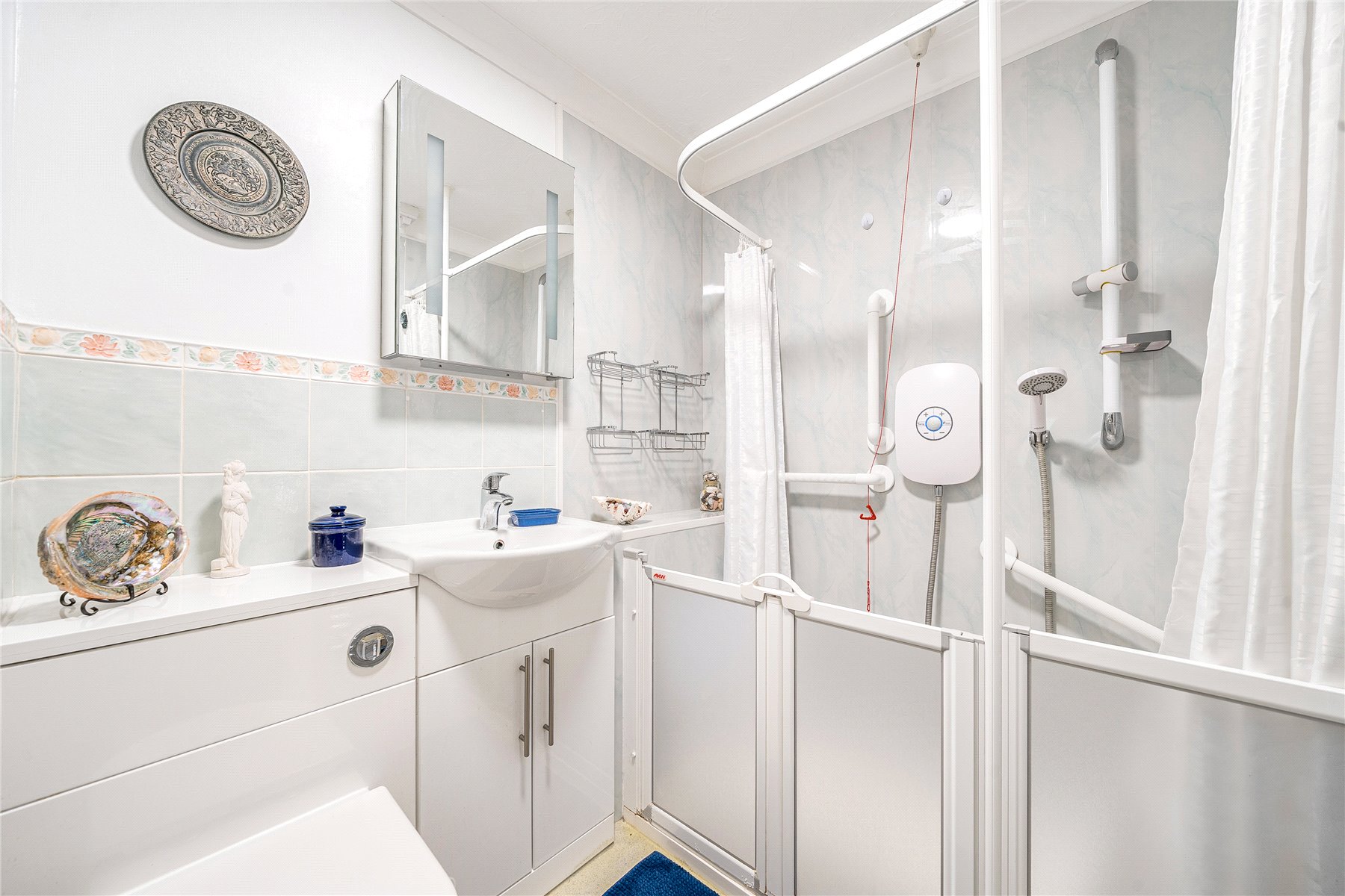 Both bedrooms are well proportioned and thoughtfully designed. The principal bedroom boasts ample built-in wardrobes, providing stylish and practical storage. The second bedroom offers a peaceful retreat for guests or additional family members, or doubling up as a dining space. The bathroom was updated in 2019 to create an accessible space, providing a walk-in shower and additional safety features.