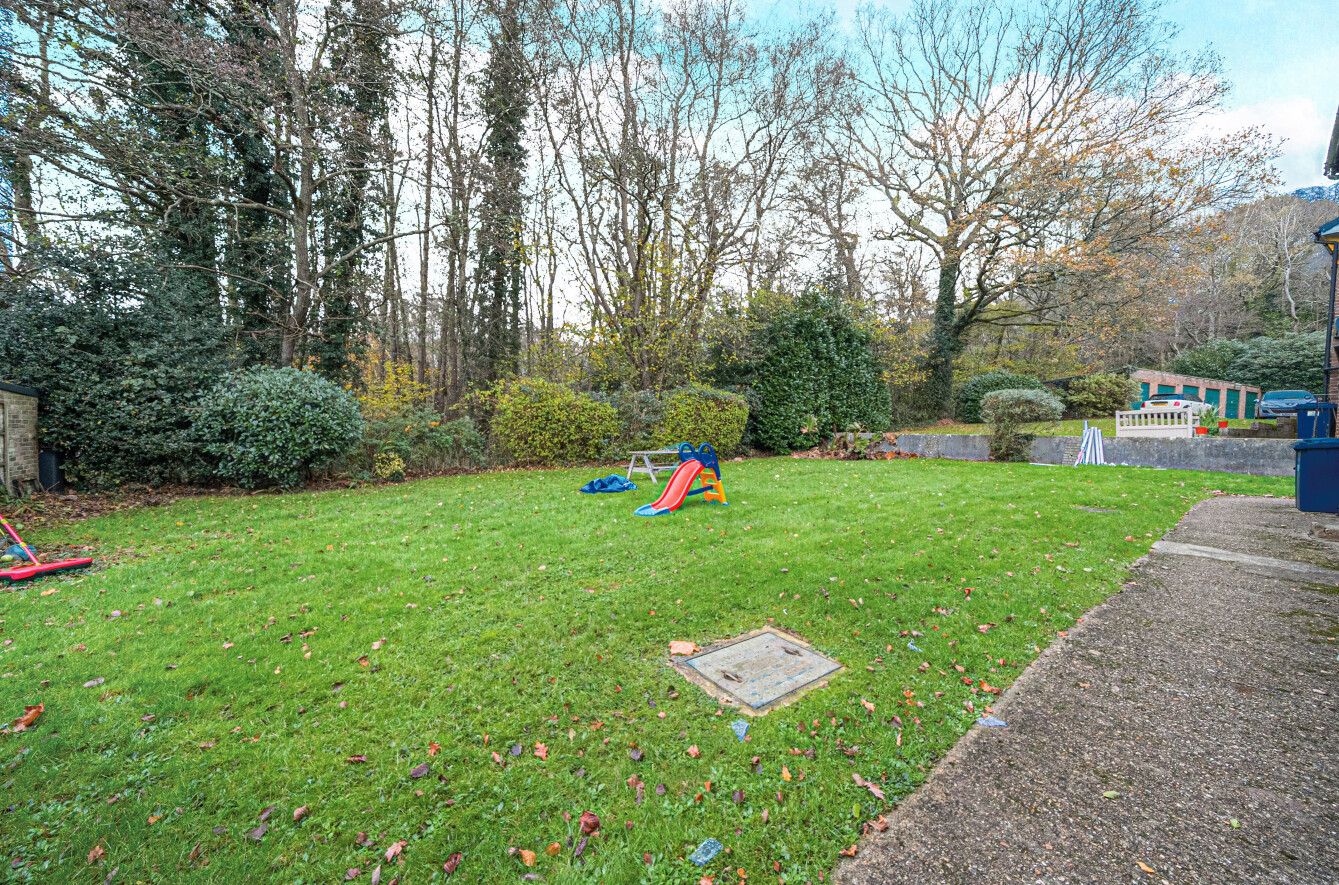 The communal grounds offer a picturesque and well-maintained setting for Weydown Court. Both the front and rear gardens feature level, neatly kept lawnsframed by laurel hedging to the front and bordered by tranquil woodland to the rear.