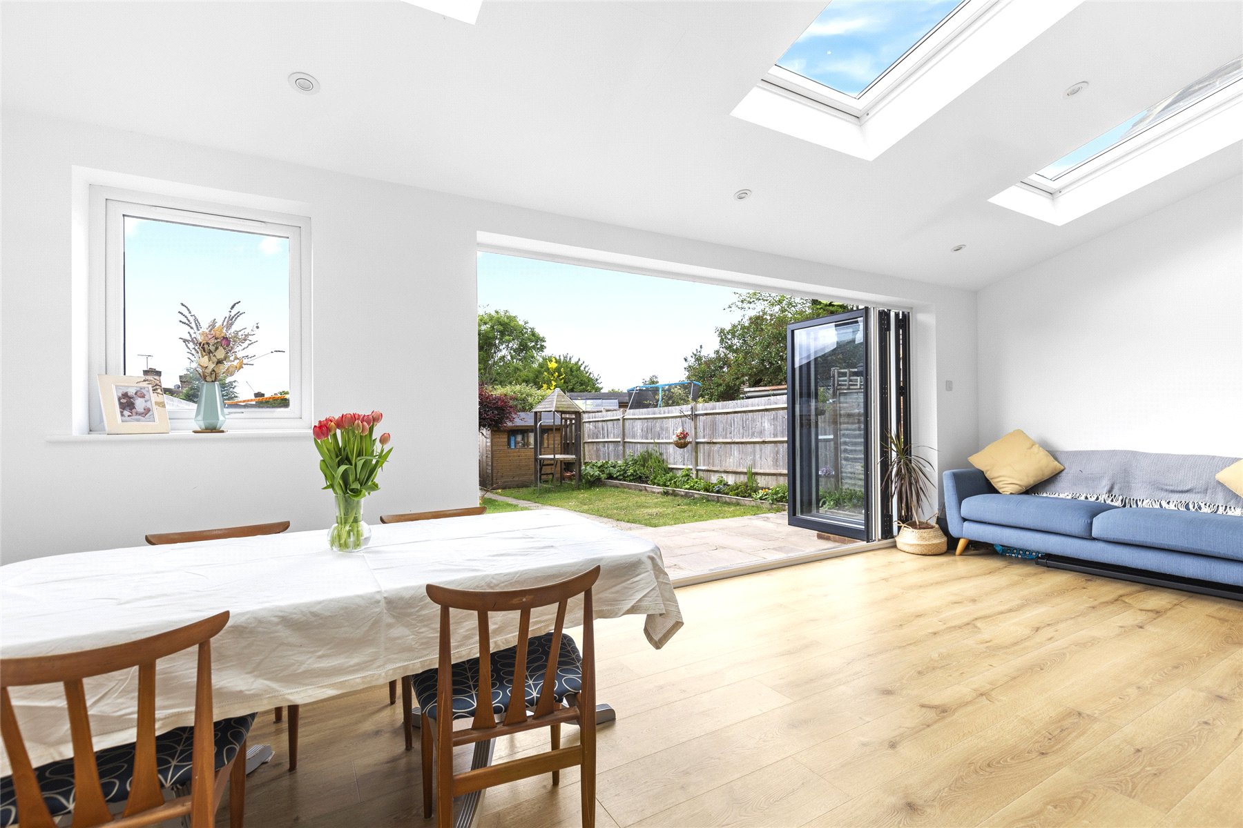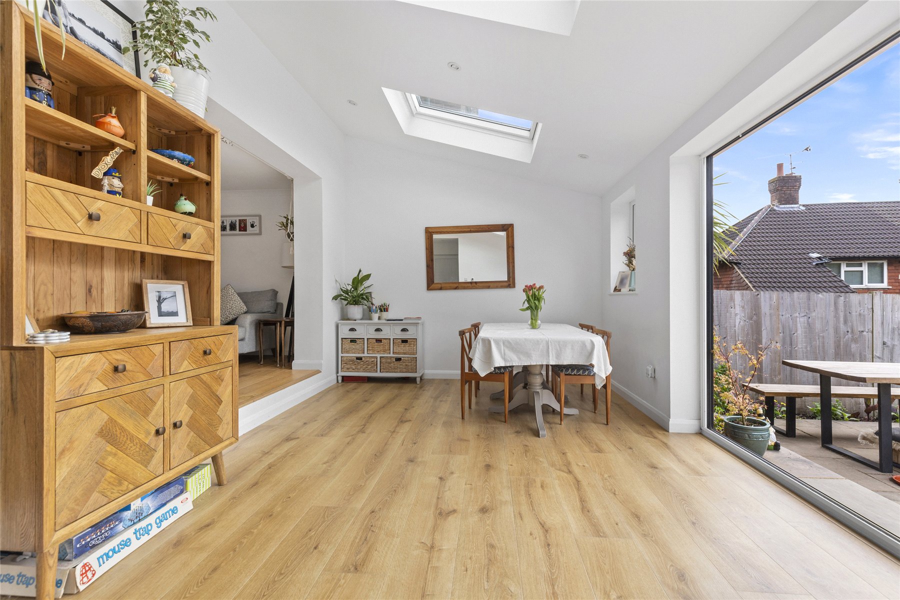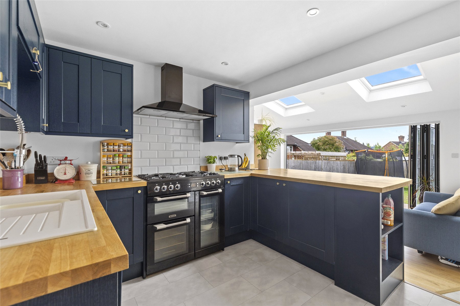 Having been thoughtfully renovated in recent years and skilfully extended, this mid-terraced home is presented in immaculate condition, both inside and out a property sure to appeal to discerning buyers with an eye for style. Its charming cottage-style frontage immediately captivates, inviting you through the oak front door into a home that exudes calm, balance, and careful design.The welcoming sitting room features a generous front window and a partially open-plan layout, allowing natural light to pour through the space and create a bright, uplifting atmosphere throughout the year.At the heart of the home lies the impressive kitchen and entertaining area a spacious and versatile hub designed for modern living. Whether preparing meals, dining with friends, or relaxing with family, this beautifully arranged space adapts effortlessly to every occasion. Bi-fold doors seamlessly connect indoors and outdoors, while the deep navy tones add a sophisticated, contemporary character that feels both elegant and inviting.Upstairs, there are three well-proportioned double bedrooms, each bright and comfortable, offering practical living space along with built-in storage in every room. The bathroom has been carefully designed to make the most of the available space, finished in soft grey and white tones to create a calm and relaxing environment, ideal for both busy mornings and unwinding at the end of the day.