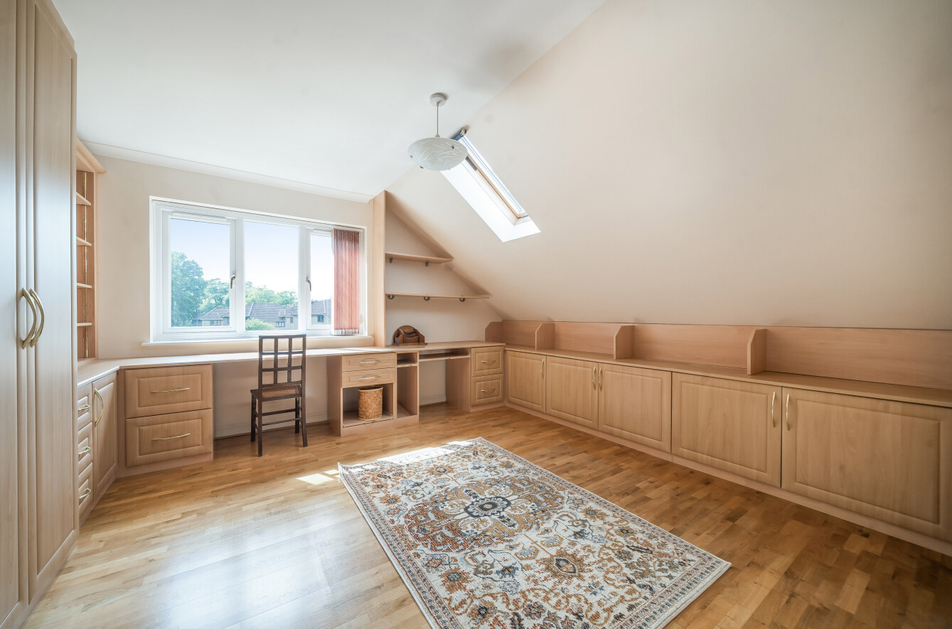 Outside, the property benefits from a substantial shingled driveway at the front, providing ample off-road parking for several vehicles. The driveway also leads to the single garage. The rear garden is a great feature of this home, boasting a large patio area- the perfect setting for outdoor dining, barbecues, or simply enjoying the peaceful surroundings. The garden is both private and secure, offering a serene outdoor space that complements the interior living areas.