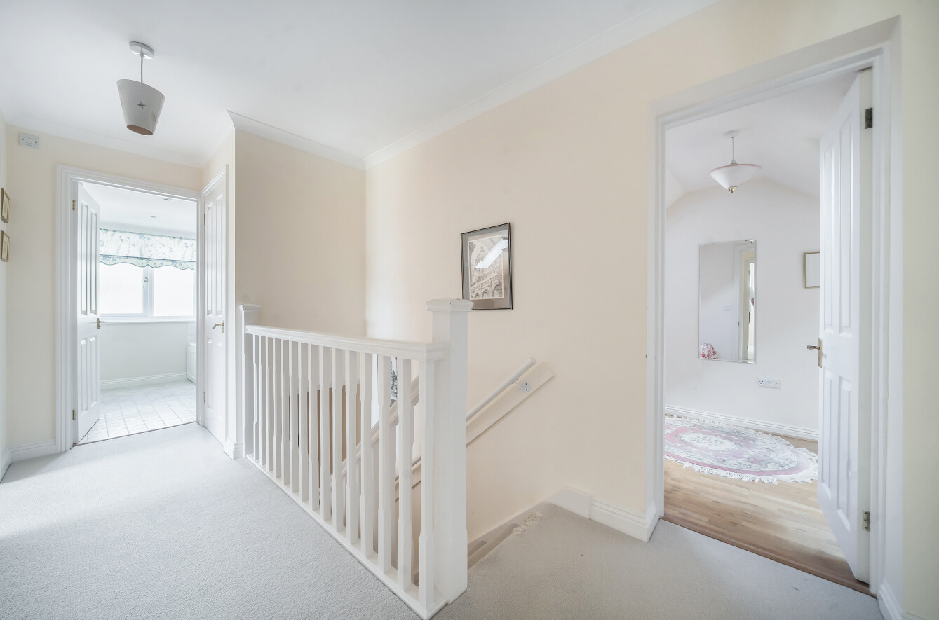 Upstairs, a generously sized landing leads to three beautifully appointed double bedrooms, each offering ample space, making them perfect for family members or guests. The principal bedroom enjoys the added luxury of an en-suite shower room, providing privacy and convenience. The two additional bedrooms are also of excellent size, ideal for children, guests, or even a home office if needed. A family bathroom completes the upstairs accommodation, offering a relaxing space with high-quality fixtures and fittings.