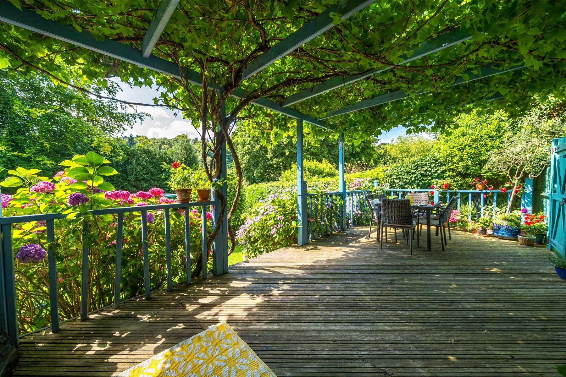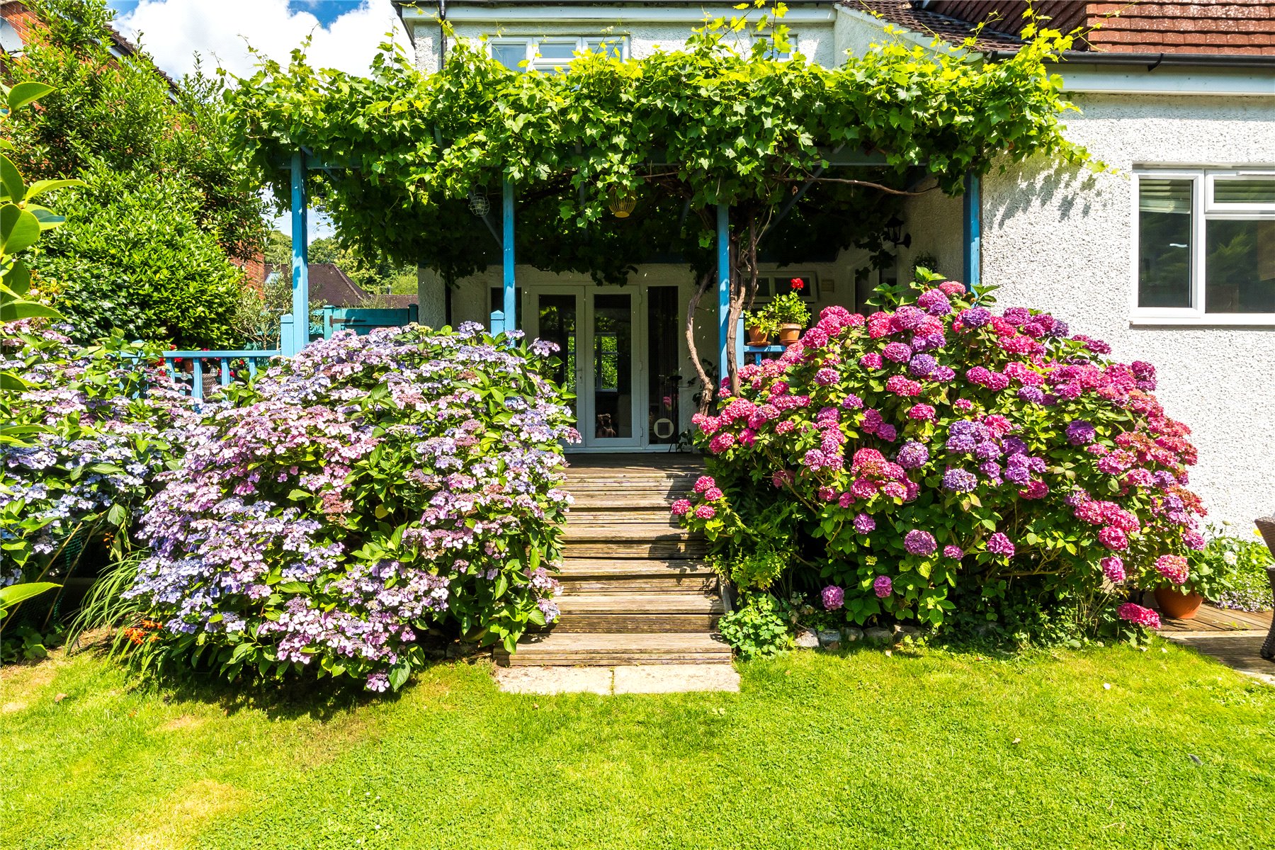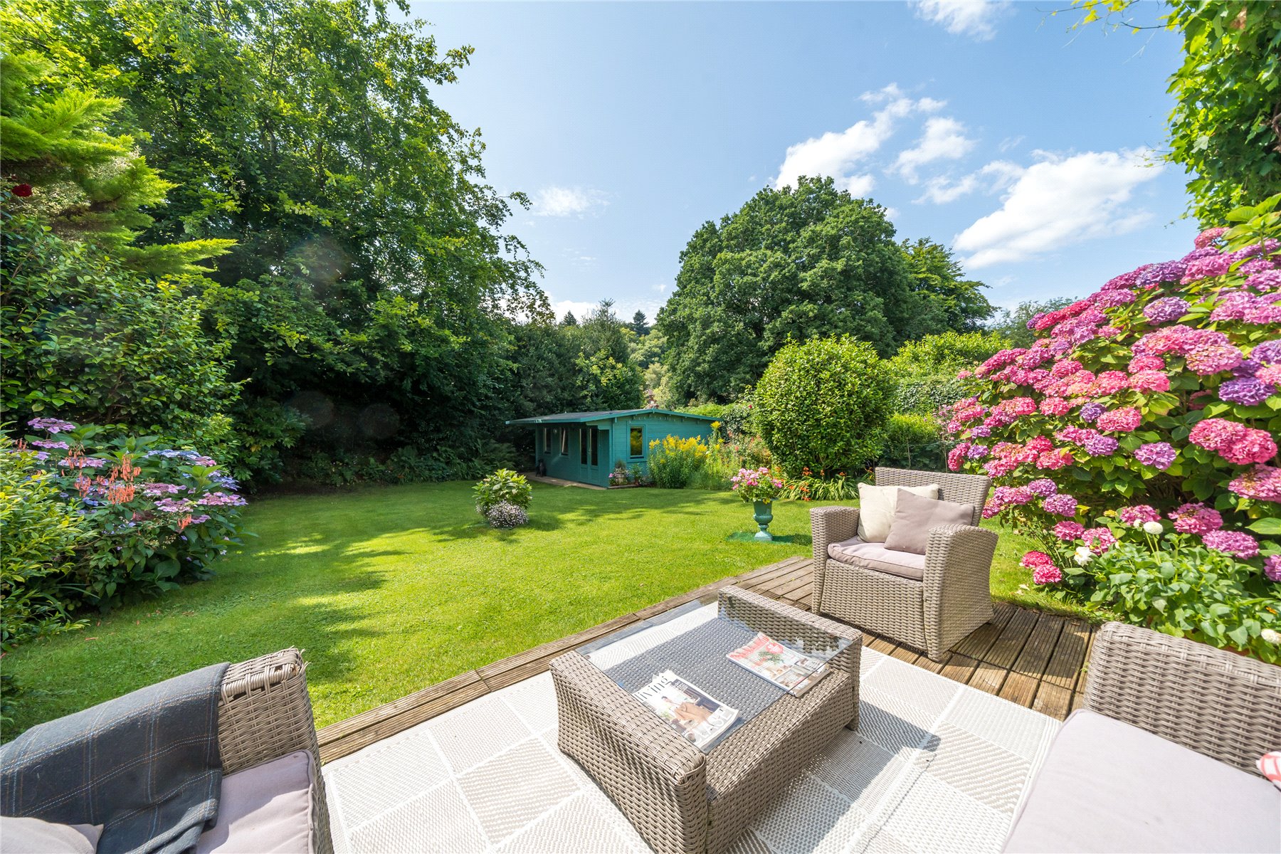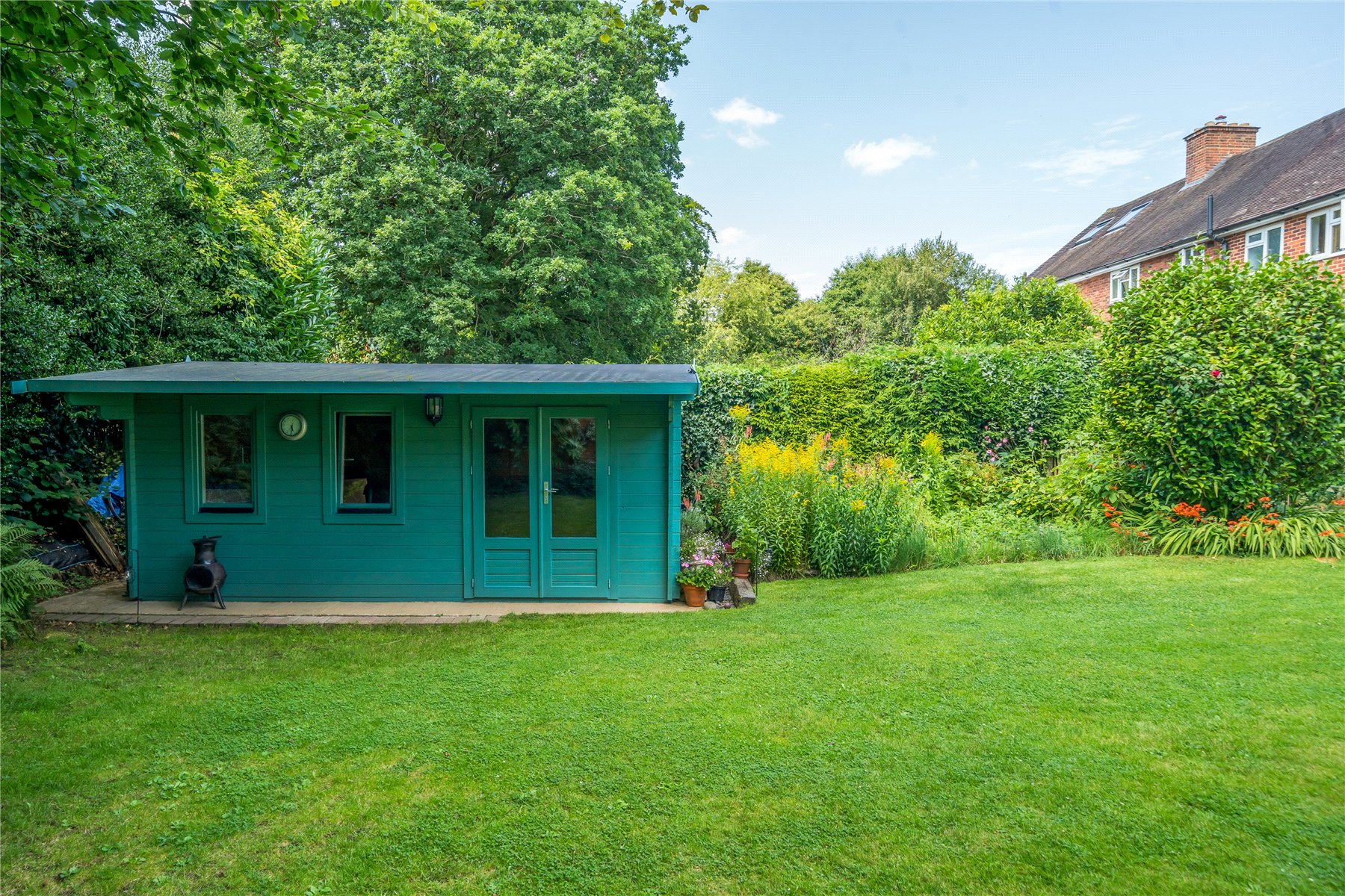 Externally, the property boasts ample off-road parking for multiple vehicles, ensuring convenience for residents and visitors alike. An integral garage provides further storage or parking options, while access at the side of the house leads to the rear garden, bathed in the warmth of a south-west aspect. Here, a lush lawn provides a verdant backdrop, bordered by mature beds bursting with colour and fragrance throughout the seasons. A decked terrace offers the perfect spot for enjoying a morning coffee or evening drinks, while a secluded timber-built home office/studio/summer house nestled towards the rear of the garden provides a perfect retreat for work or leisure pursuits.