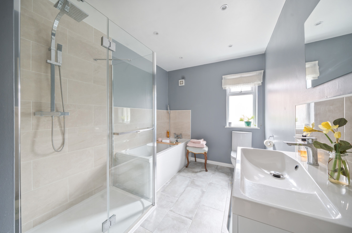 Ascend the staircase to the first floor, where the large principal suite awaits, offering and en-suite, and serene views of the rear garden and a private retreat from the hustle and bustle of daily life. Three further double bedrooms provide ample accommodation for family members or guests, each thoughtfully appointed with comfort in mind. A well-appointed family bathroom completes this level, offering a tranquil space to unwind and rejuvenate.