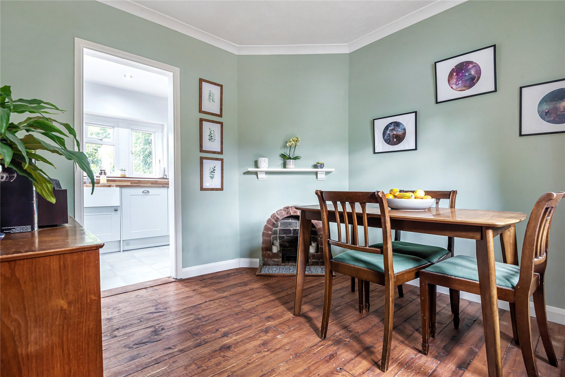 The entrance hall opens to both the dining room and the sitting room. The generously sized dining room is a versatile space, perfect for hosting guests or enjoying family time. Leading from the dining room, the well-equipped kitchen offers ample storage and a practical layout for cooking and meal preparation. Adjacent to the kitchen is the spacious sitting room, which exudes warmth and character with its open fireplace. The ground floor also includes a convenient downstairs WC.