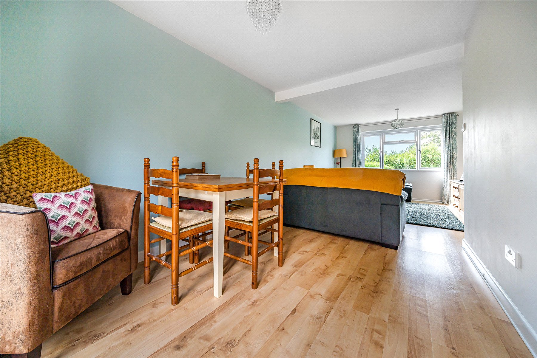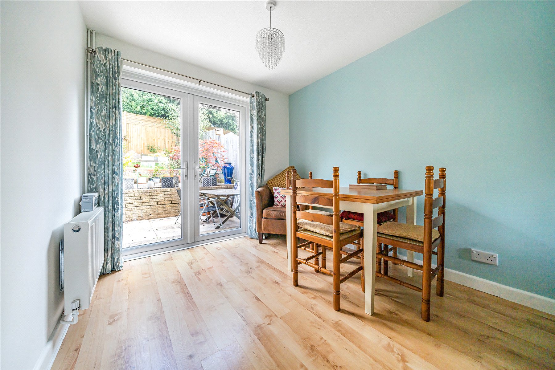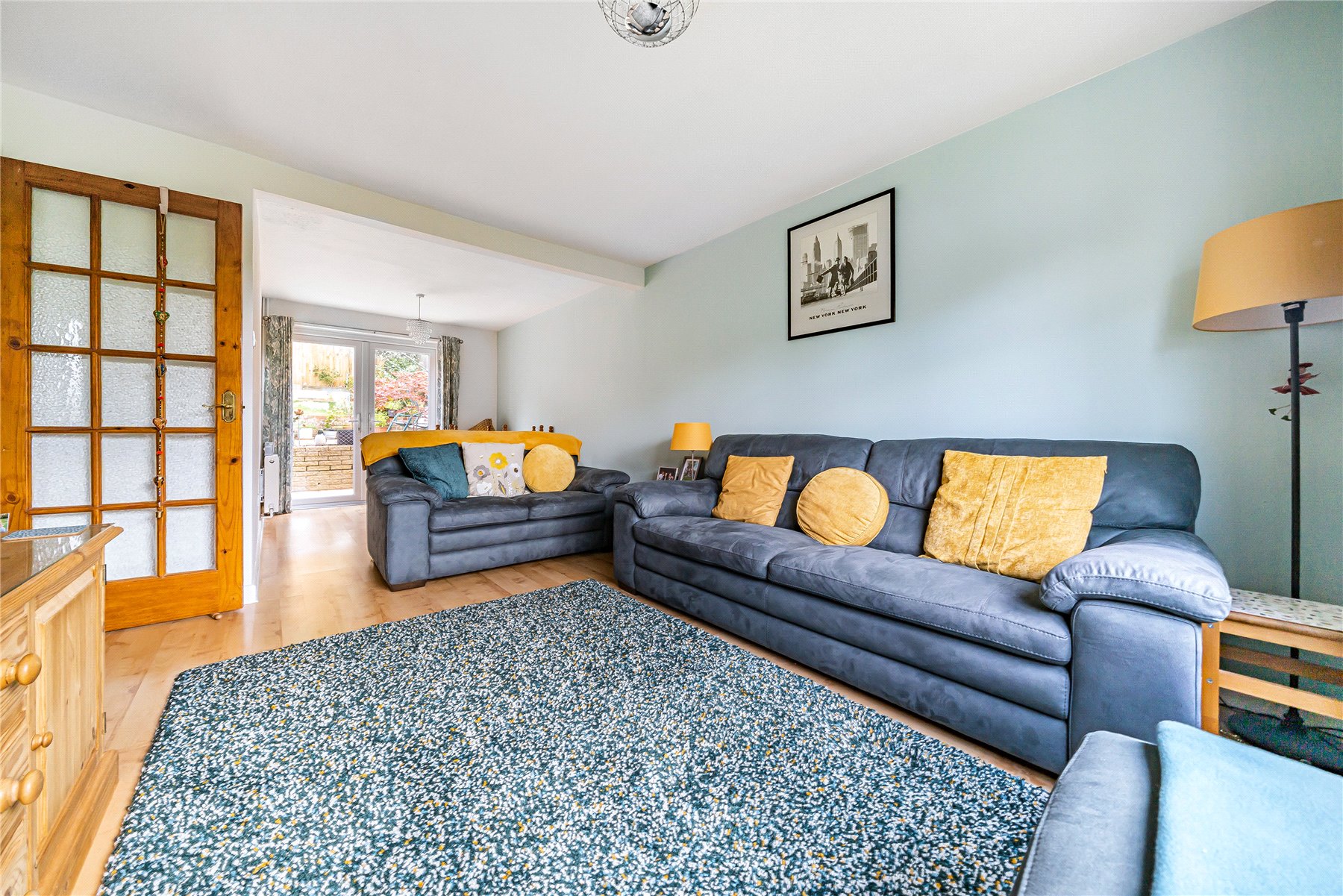 The living and dining room is a standout feature, running the full length of the house and offering a bright and spacious area for relaxation and entertaining. A large double-glazed window at the front floods the room with natural light, while double-glazed doors at the rear open seamlessly onto the garden, creating a wonderful indoor-outdoor flow.