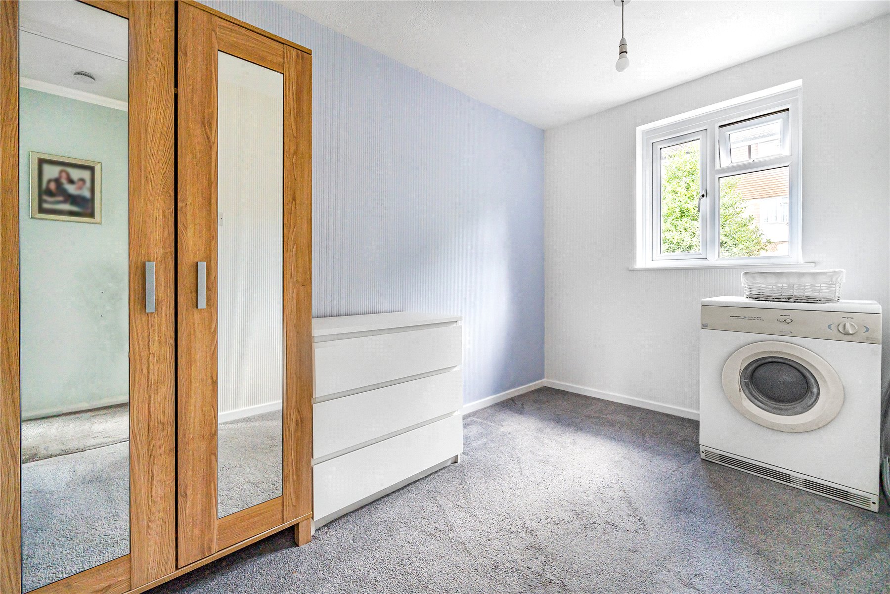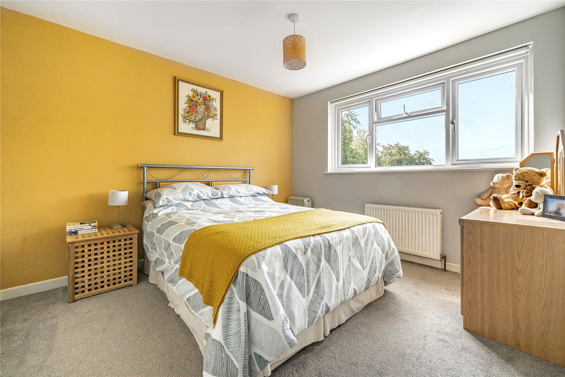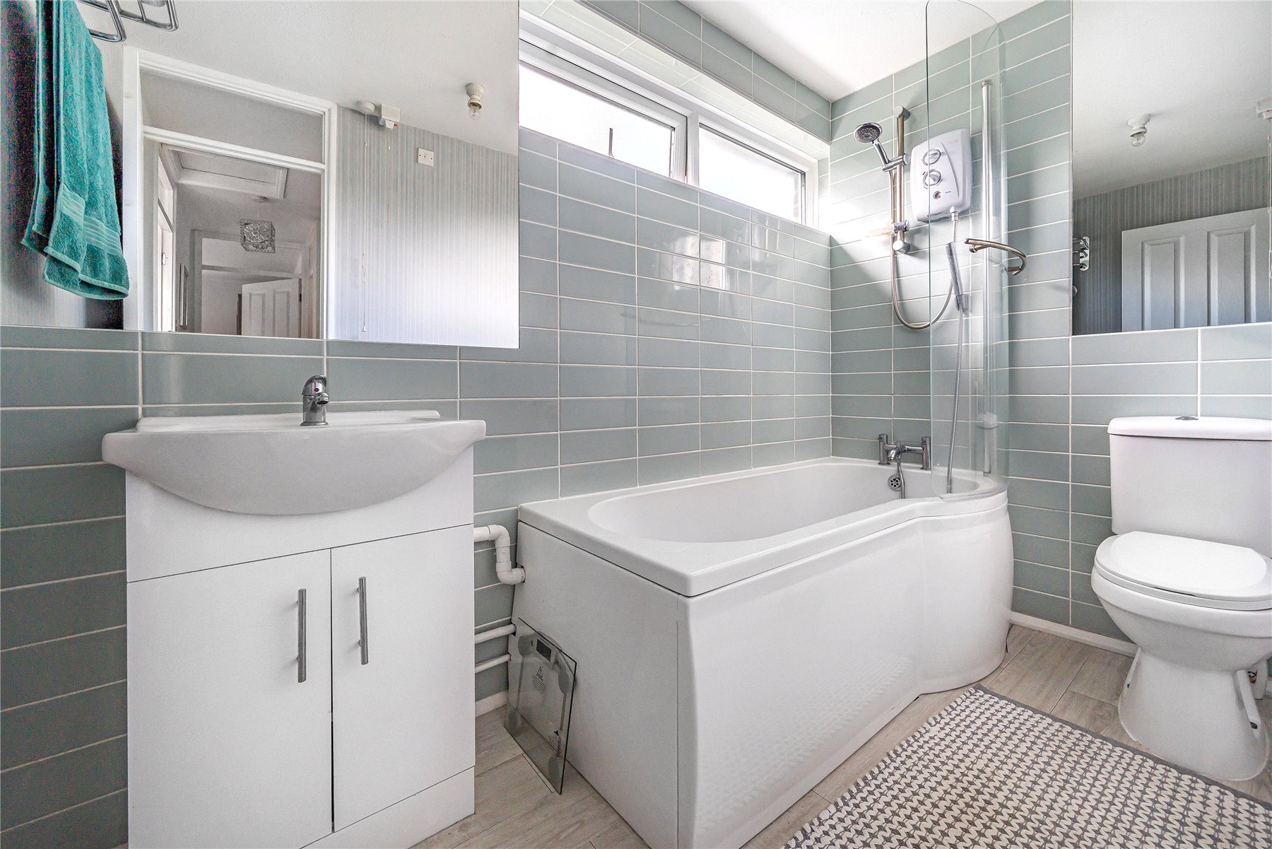 Upstairs, the property offers three well-sized bedrooms. The principal bedroom overlooks the rear garden and features a built-in wardrobe. The second bedroom, also with a built-in wardrobe and airing cupboard, enjoys far-reaching views to the front. The third bedroom, situated at the rear, is a versatile and comfortable space. A modern and spacious family bathroom completes the first-floor accommodation.