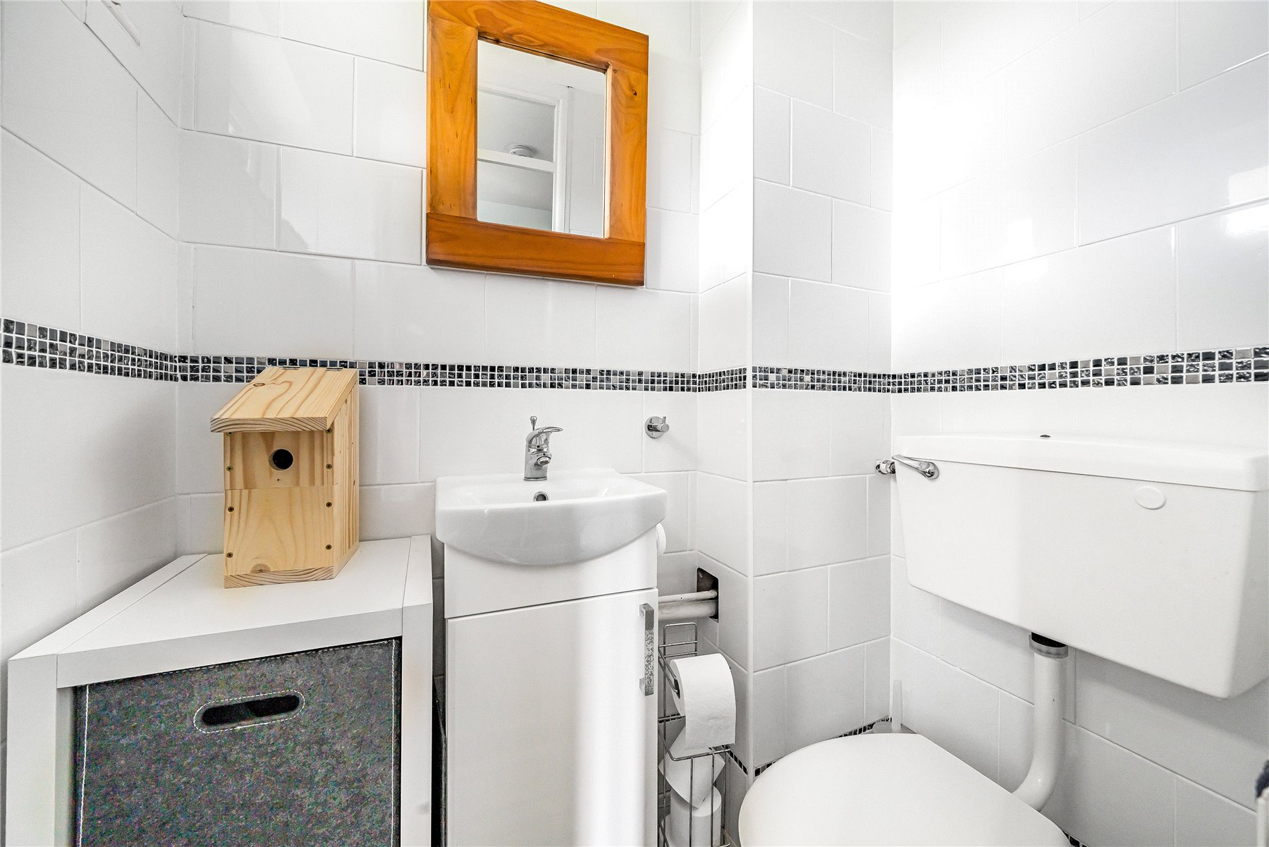The modern kitchen is generously proportioned and well-equipped with a Rangemaster oven, ample space for appliances, and a double-glazed door leading directly to the garden. Completing the ground floor is a convenient cloakroom.