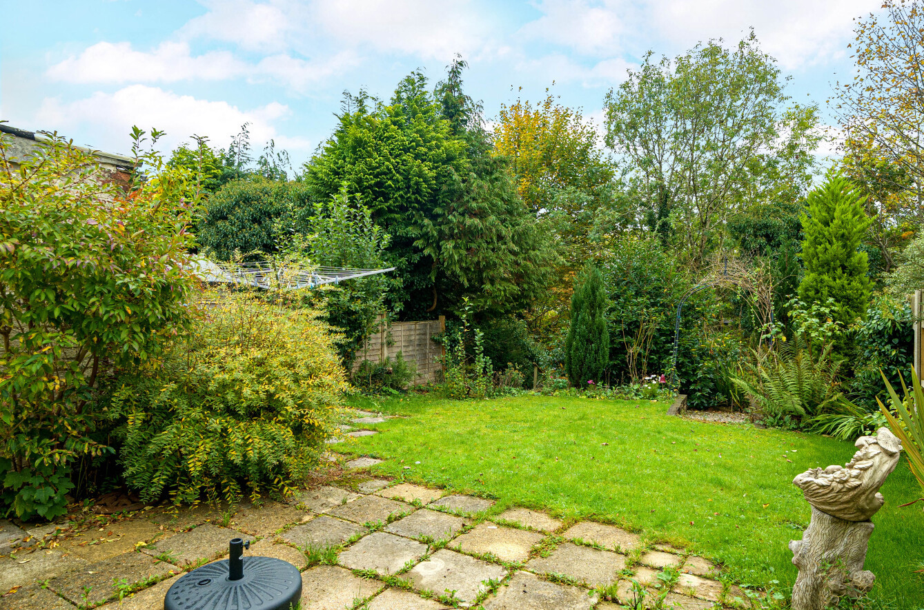 Outside, the property is approached via a private driveway with parking for multiple vehicles leading to a single garage. The rear garden is a lovely feature mainly laid to lawn with mature shrubs and trees, offering a peaceful and private setting.