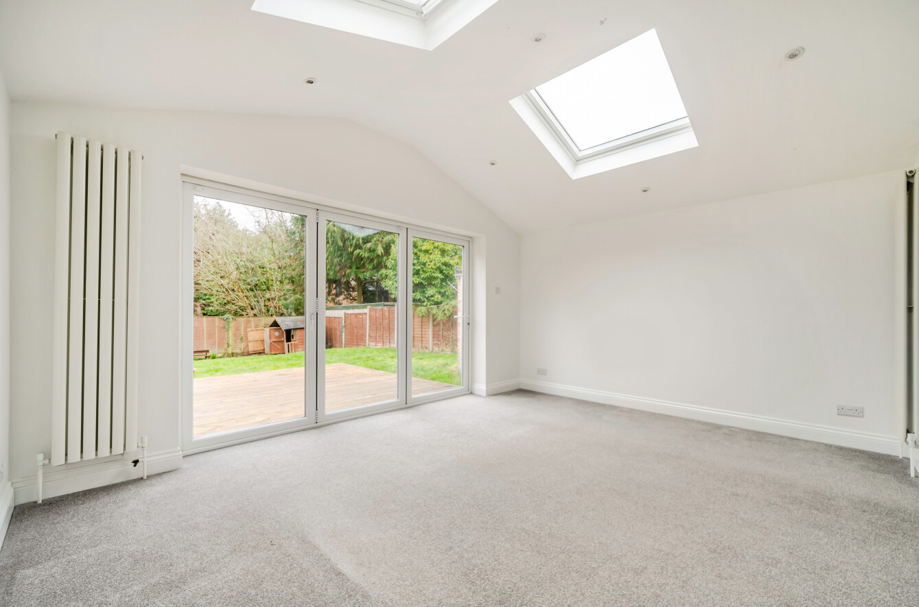 To the rear of the property is an impressive 26ft reception room, providing a generous living and entertaining space. The room benefits from excellent natural light and features bi-fold doors opening directly onto the rear decking and garden, creating an ideal indoor-outdoor living environment.