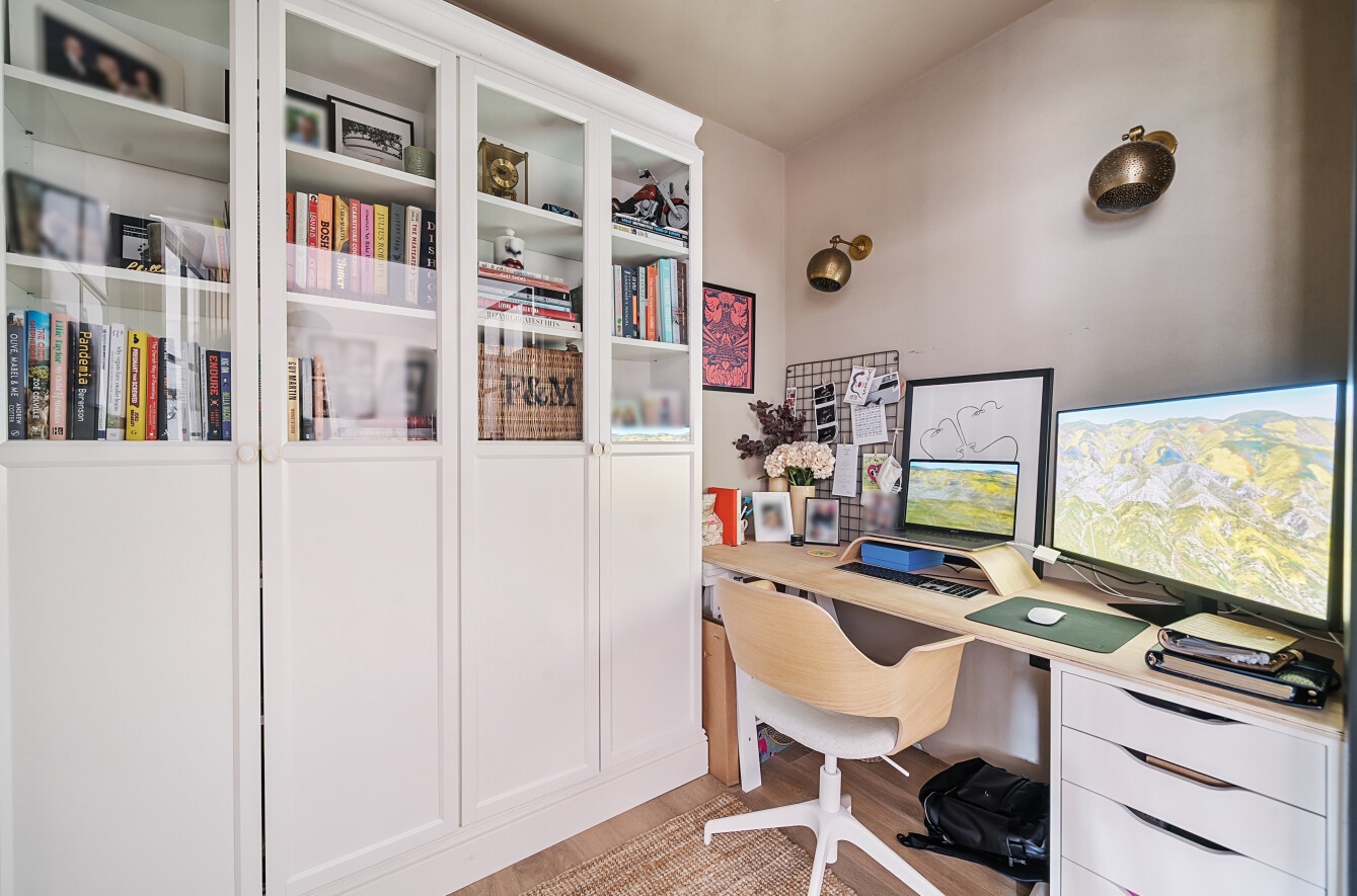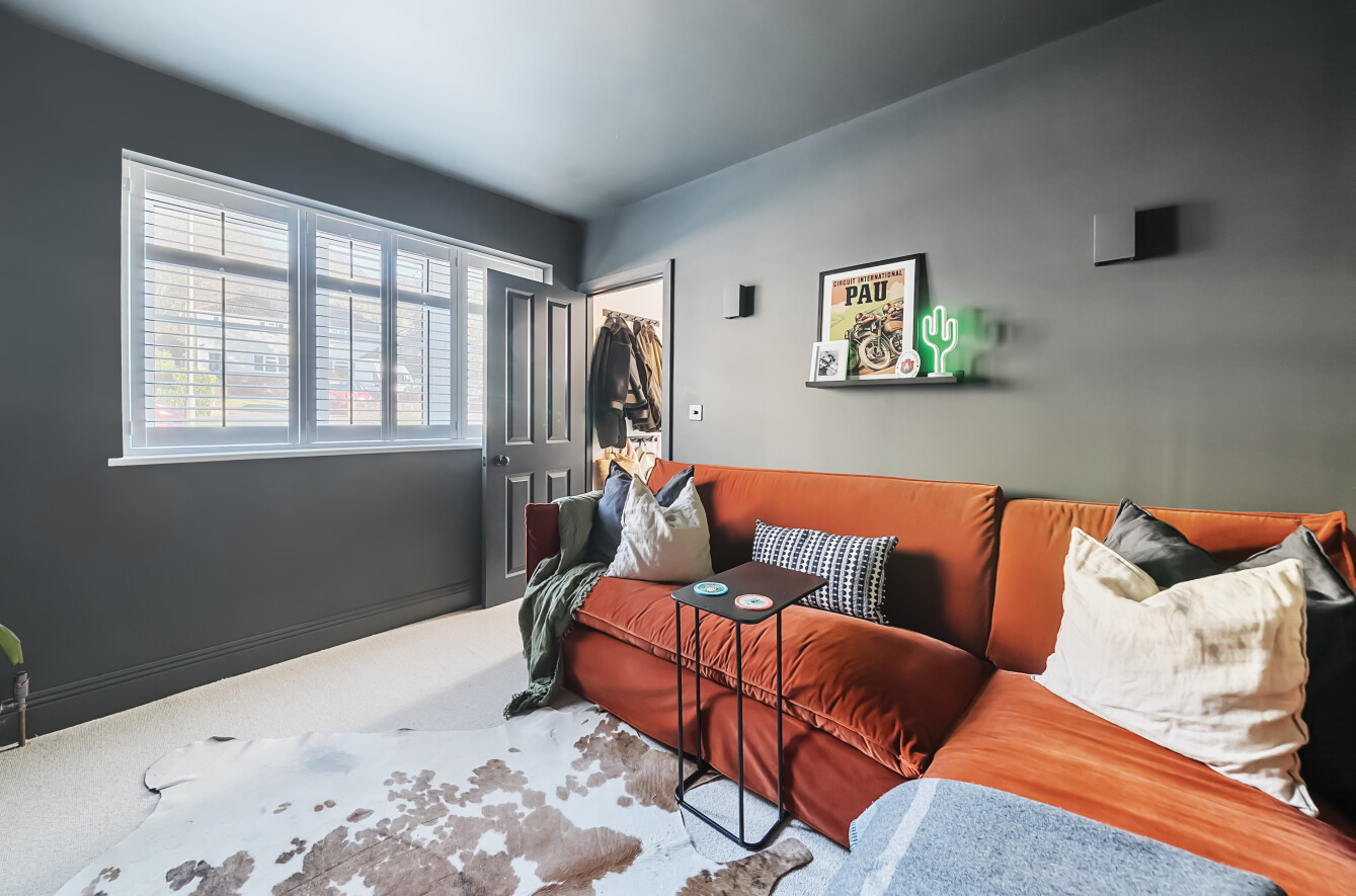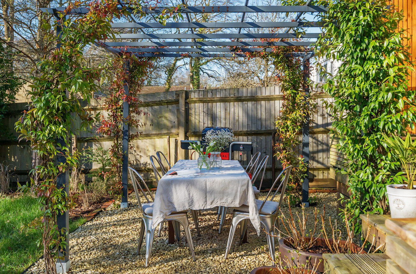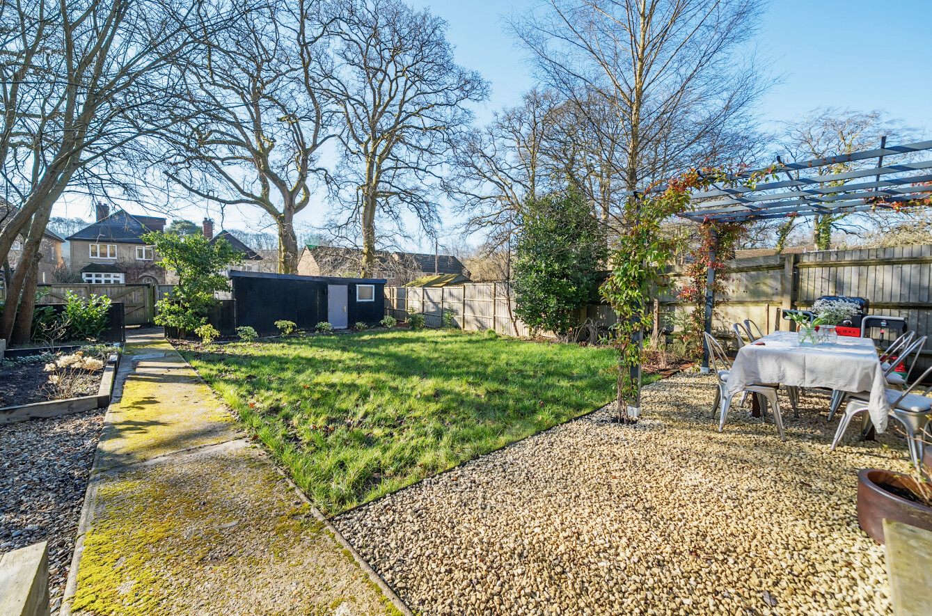 The property boasts ample driveway parking for three vehicles to the front, with convenient side access leading to the rear garden. The outdoor seating area, featuring a pergola adorned with climbing plants, creates a charming space for alfresco dining and social gatherings. The garden itself is predominantly laid to lawn with raised beds, offering a level surface for easy upkeep. A home gym is located down the side of the property which could also be used as a home office.