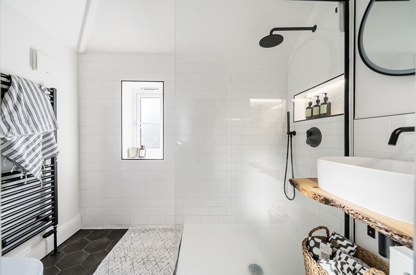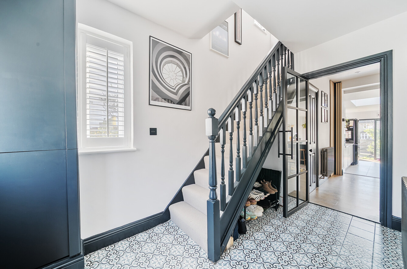 On the first floor, there are two double bedrooms and a single bedroom. The two front bedrooms benefit from built in wardrobes. A contemporary family shower room services the three rooms boasting modern white tiling and stylish black fittings.