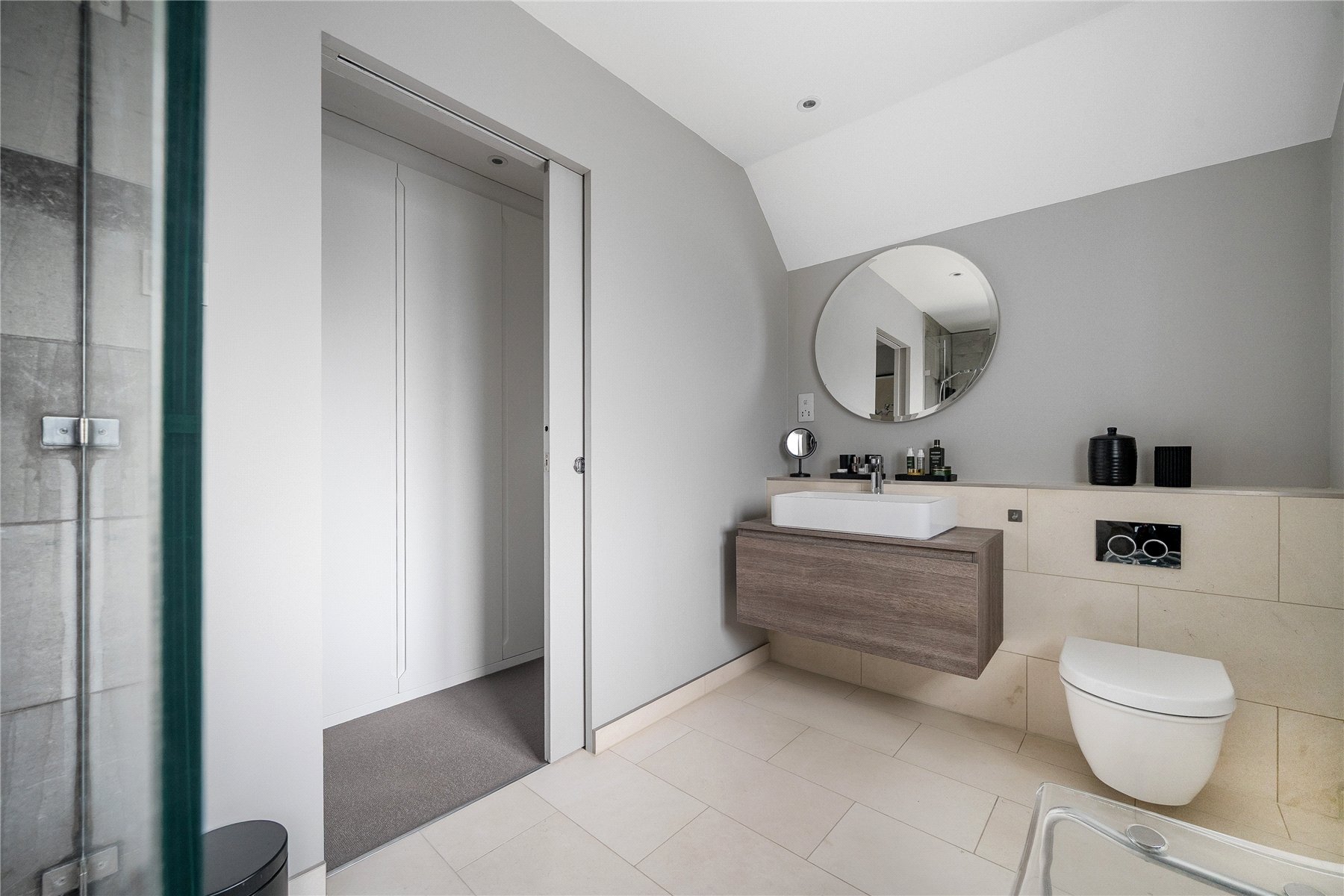 The first floor continues the sense of quality and calm. The principal bedroom is a generous and relaxing space, enhanced by fitted storage which create a dressing area, and a contemporary ensuite shower room finished with modern tiling and fittings. Three further bedrooms, all well-proportioned and light-filled, are served by a stylish family bathroom that includes both bath and shower facilities. This layout makes the house ideal for families, guests, or those requiring additional work-from-home space.