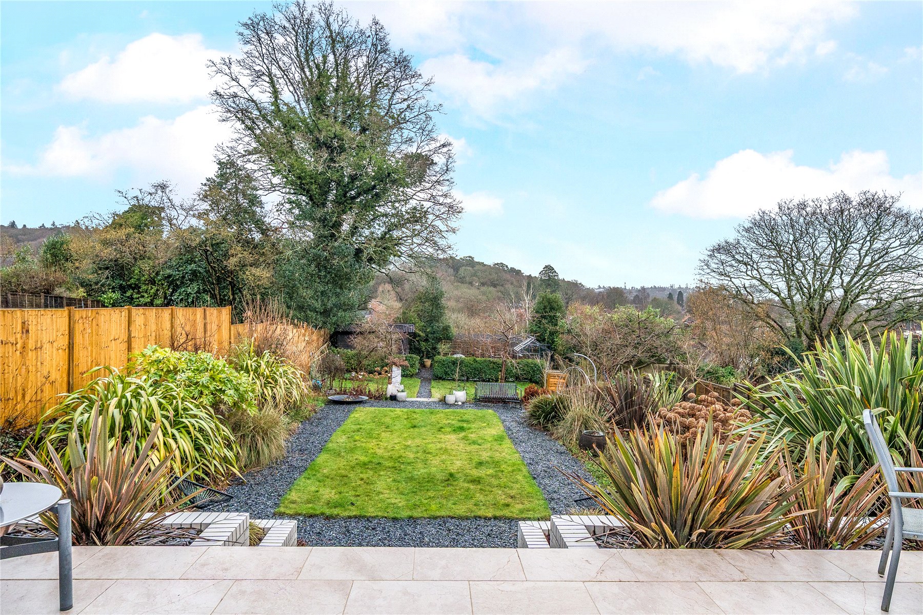 Externally, the rear garden is a particular highlight. Extending to approximately 120 ft, and thoughtfully landscaped and arranged over gentle levels, it offers a combination of paved terraces and levelled lawns, and well stocked planters, creating distinct areas for dining, entertaining and relaxation. The elevated position affords delightful views over Haslemere and the surrounding greenery, while established planting and fencing provide a good degree of privacy. The garden feels both generous and manageable, suitable for families, keen gardeners or those simply wishing to enjoy outdoor space with minimal upkeep.