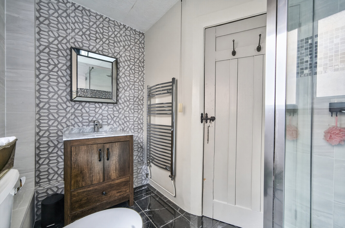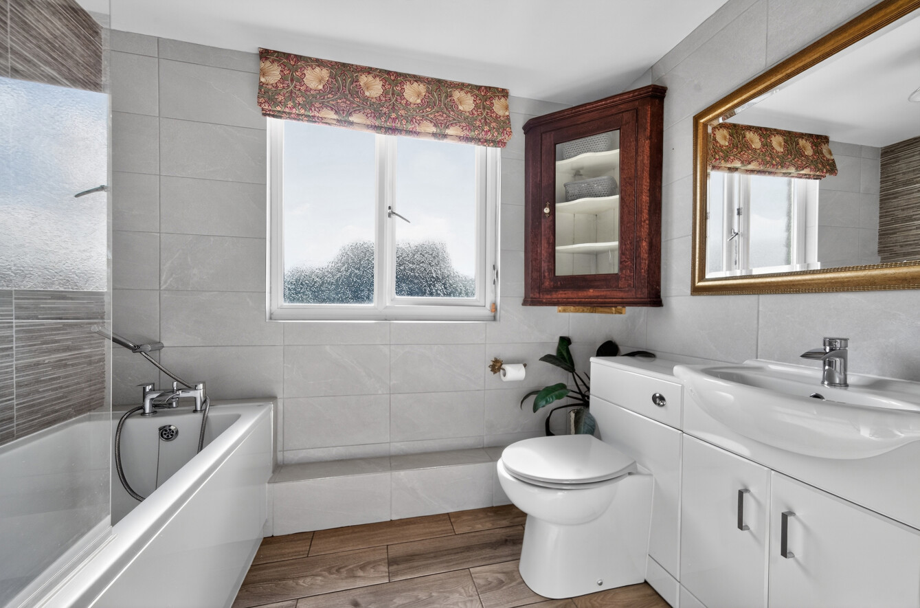 A family bathroom serves this level, finished in a clean and modern style.