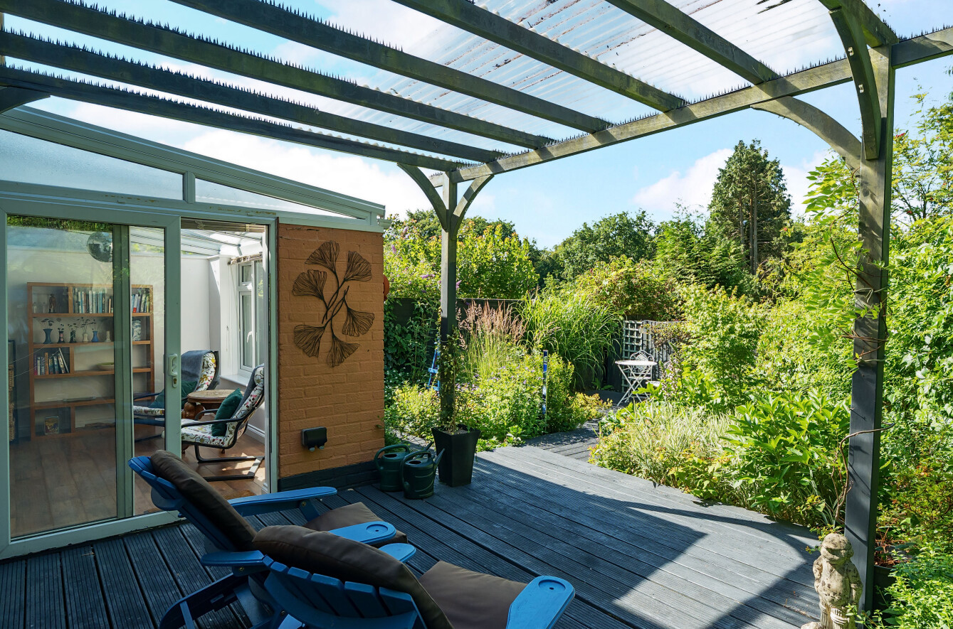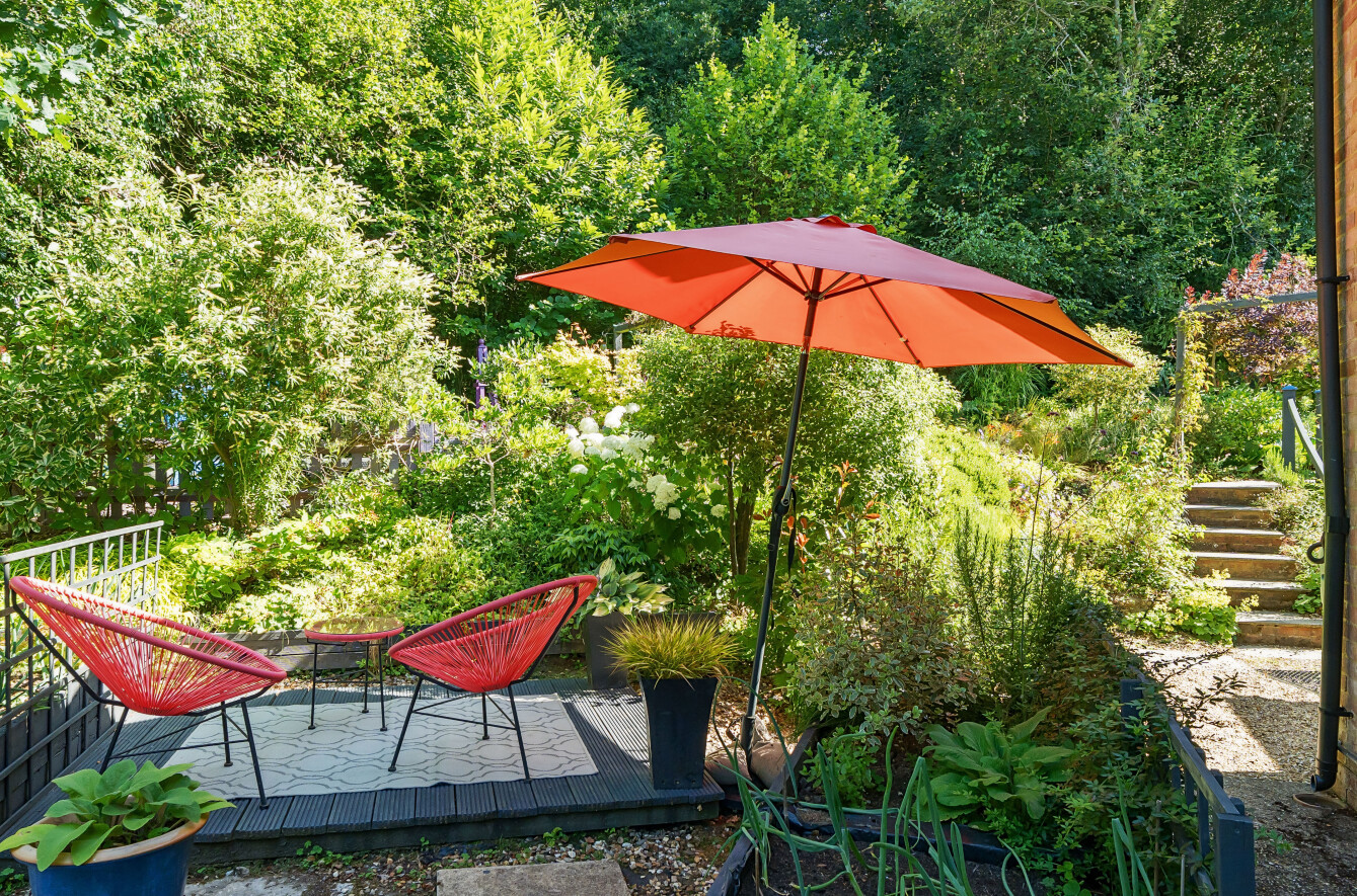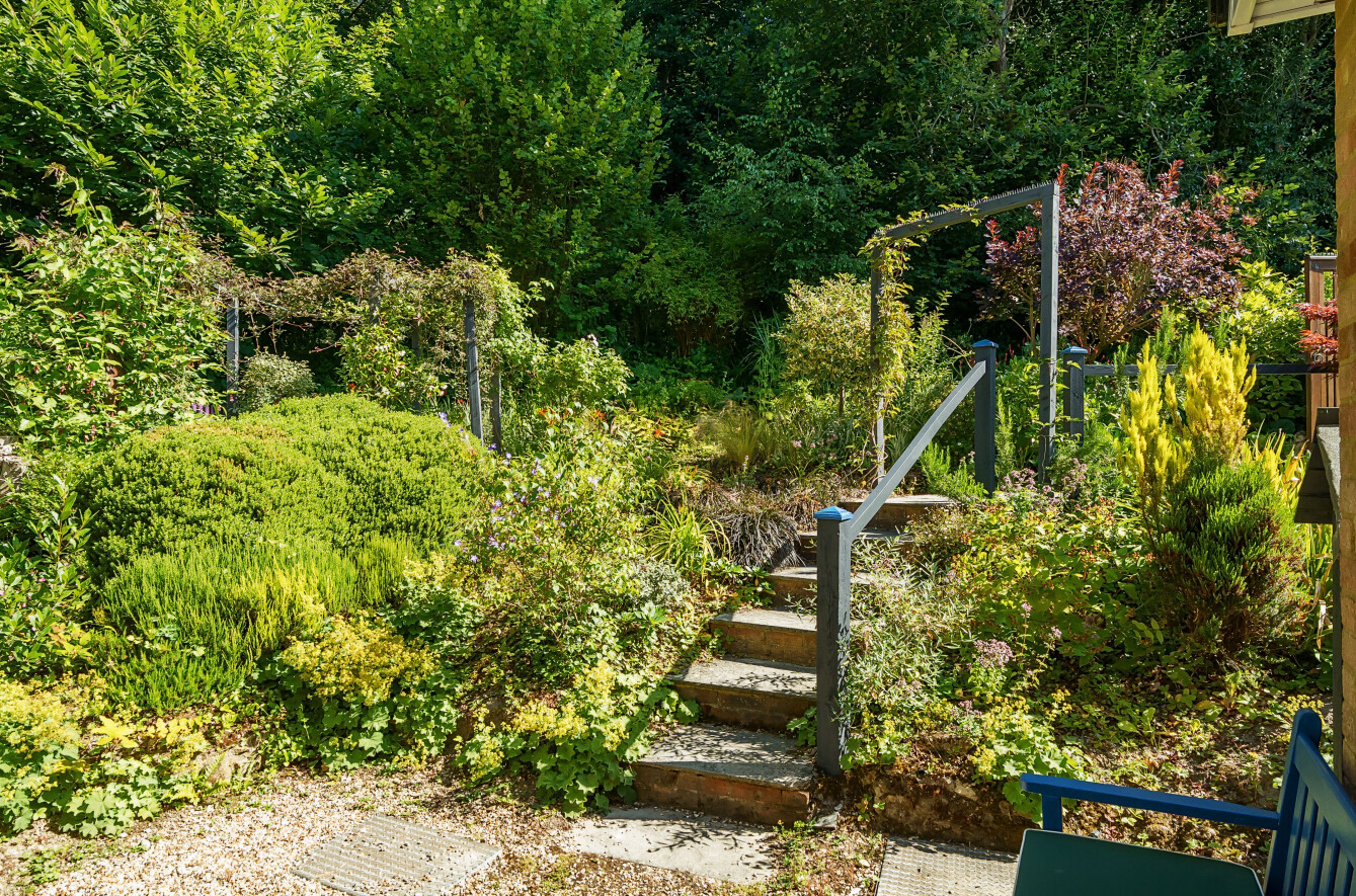 Outside, the property truly shines. Set on a corner plot, the mature garden is a gardener's dream thoughtfully landscaped with a wide variety of established planting, colourful borders, and tranquil seating areas that offer privacy and year-round interest. A single garage and off-street parking provide added practicality.