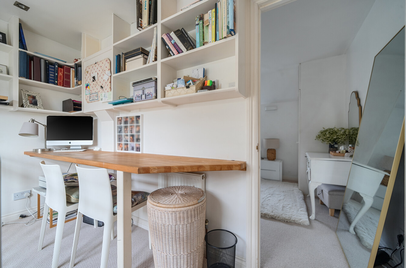Upstairs, the principal bedroom enjoys generous proportions along with built-in storage and an en-suite shower room. There are three further well-presented bedrooms. Two of which share an ensuite shower room while a modern family bathroom serves the remaining bedrooms. There is also a separate study. The first floor is served by two staircases increasing its versatility and flexibility.