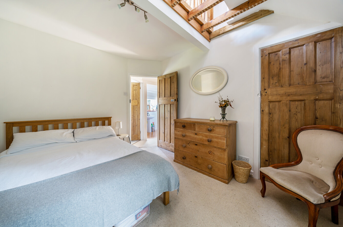 Upstairs, the accommodation continues to impress. The main bedroom is a true sanctuary, benefiting from a triple-aspect outlook, an en-suite bathroom, and a dressing area complete with built-in wardrobes.
