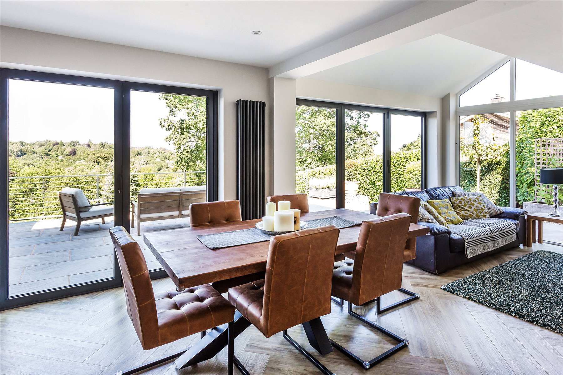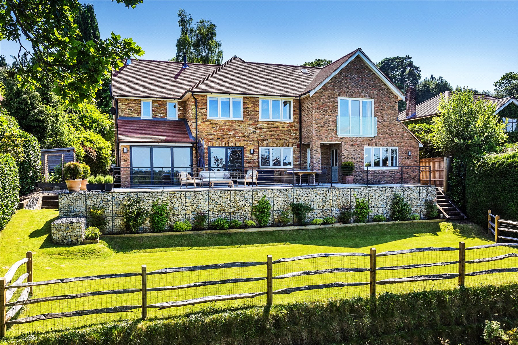 Beautifully created to maximise breathtaking views of the Surrey Hills landscape at every turn, Greenwich House offers a superb example of traditional yet contemporary styling. Meticulously extended and refurbished, with an expanse of bi-fold doors in the magnificent kitchen/dining/family room, three spacious reception rooms, five bedrooms including the stunning principal & en suite, integrated double garage and landscaped gardens.