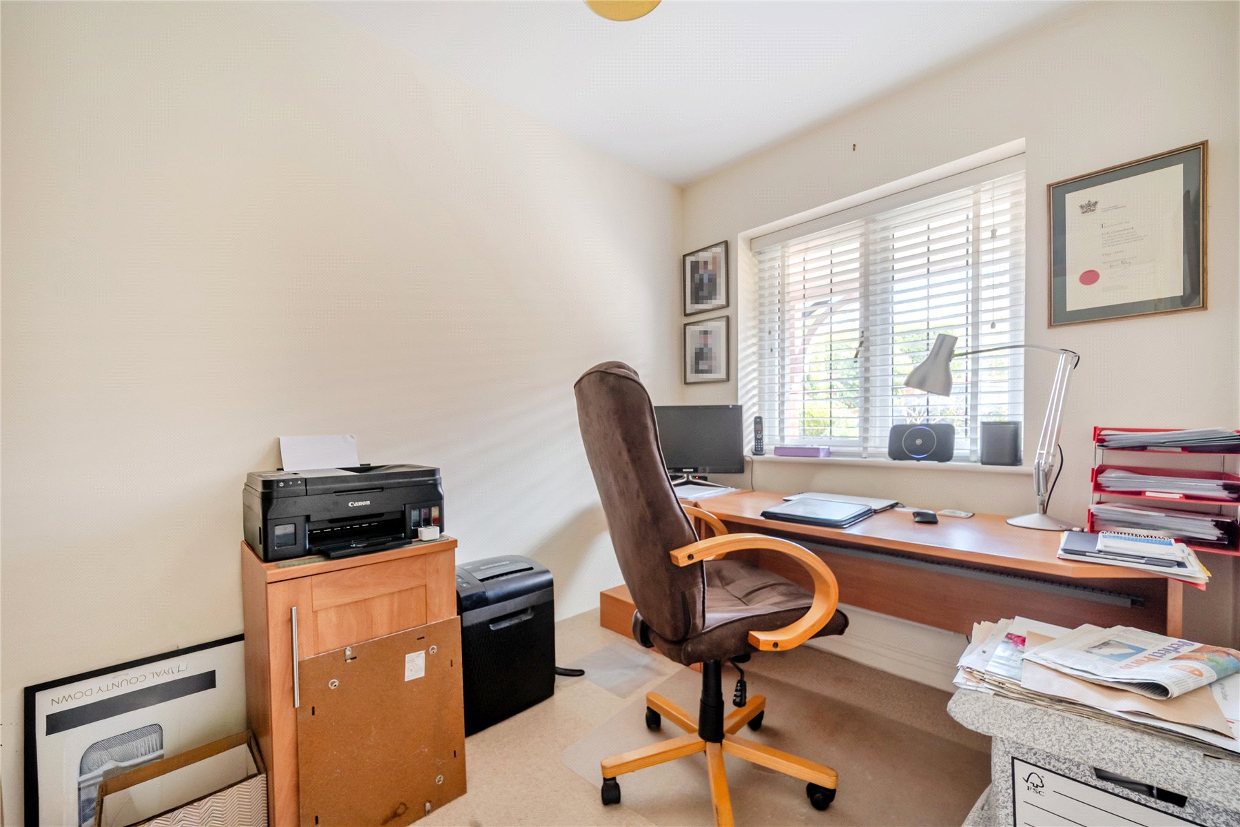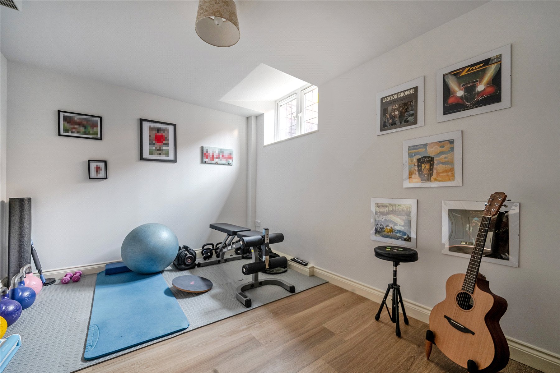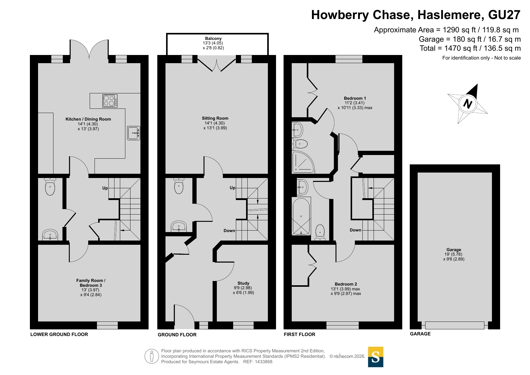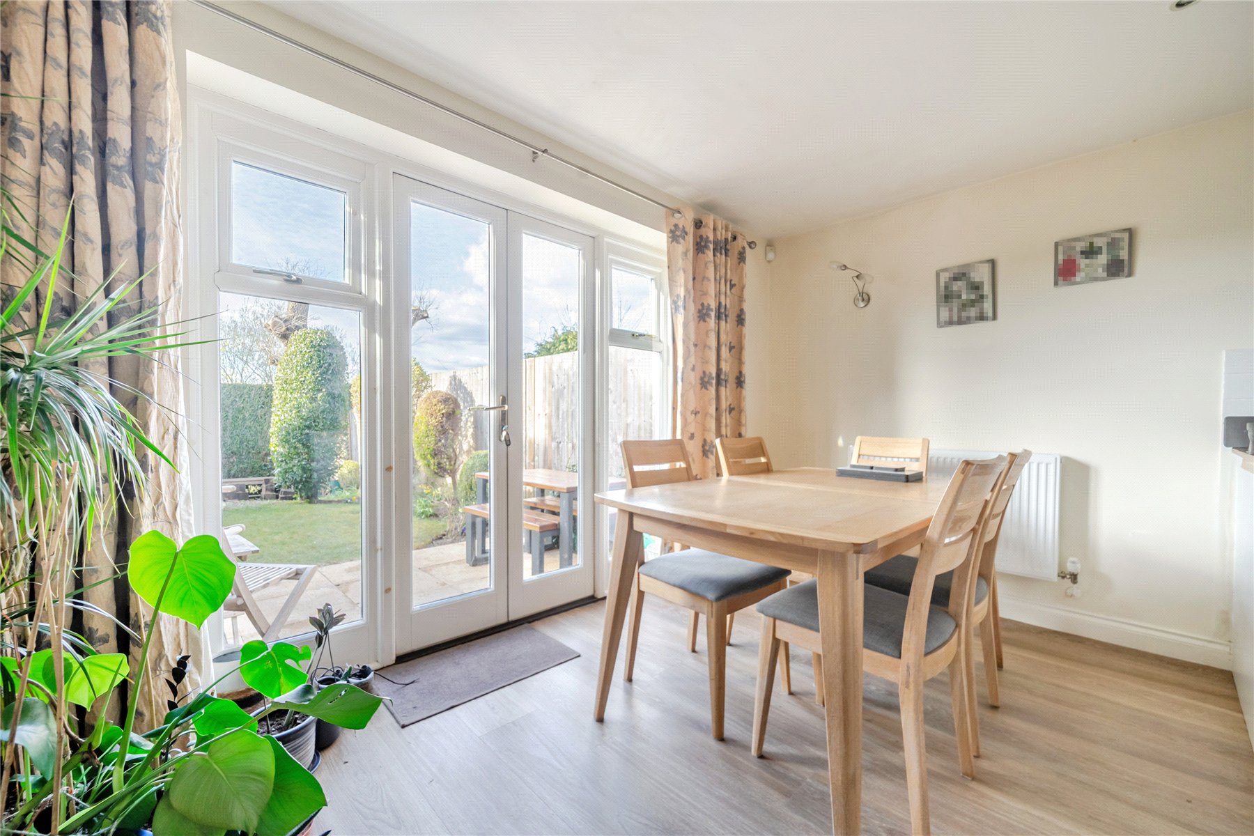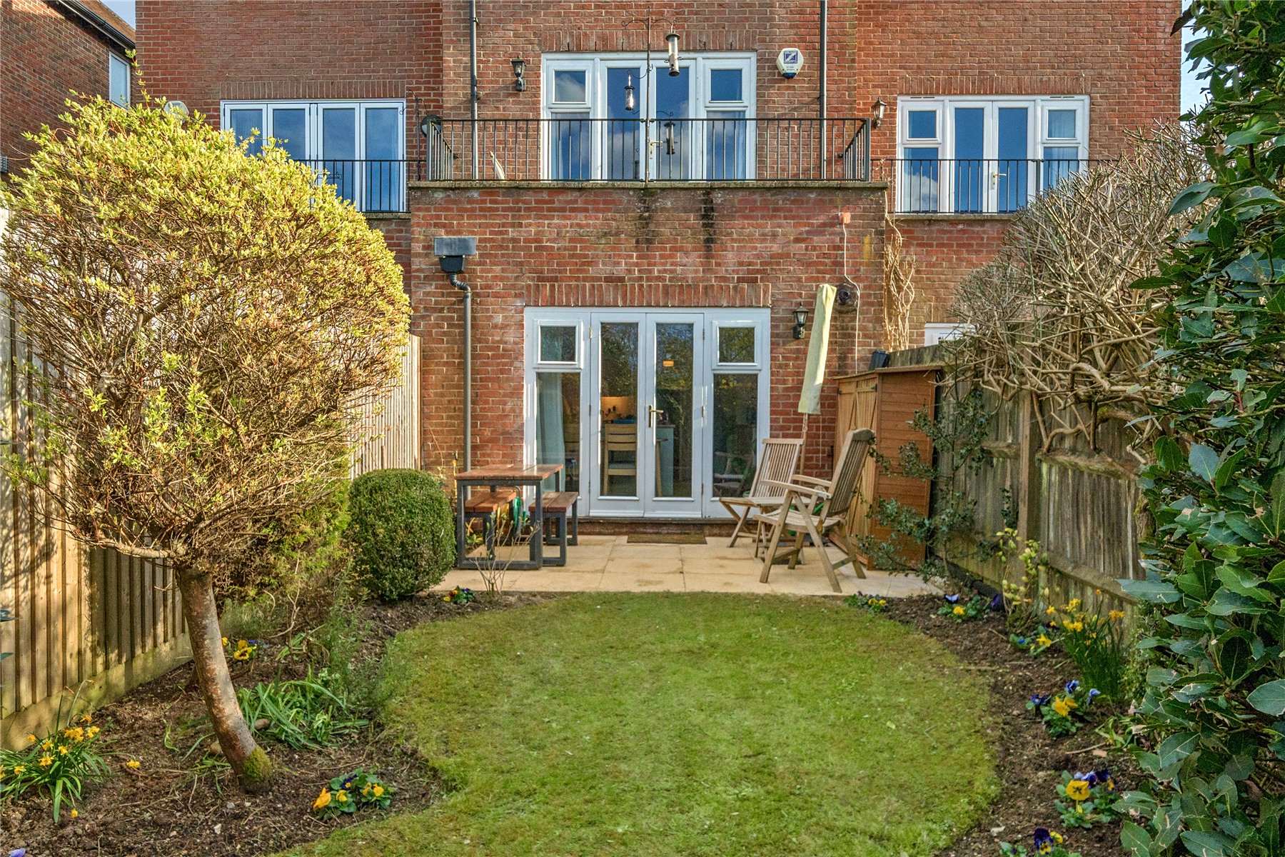 A beautifully presented and spacious terraced townhouse, built in 2005, ideally positioned within a highly sought-after cul-de-sac just a short walk from the station and town centre. This stylish home combines modern comfort with versatile living accommodation arranged over three thoughtfully designed floors, making it perfectly suited to families and professionals alike.The lower ground floor offers a superbly designed, sociable living space. At its heart is an open-plan kitchen and dining room, fitted with contemporary units, integrated appliances, and generous space for diningideal for everyday family life as well as entertaining. French doors open directly onto the landscaped rear garden, creating a seamless connection between indoor and outdoor living. Adjacent to the kitchen is a versatile room, perfectly suited as a family room, home office, gym, or playroom. A convenient cloakroom completes this level.On the ground floor, the front door opens into a welcoming reception hall with stairs rising to the upper floors. The bright, dual-aspect sitting room features elegant double doors opening onto a private balcony, providing a pleasant space to relax or enjoy a morning coffee. Also on this floor is a flexible third bedroom or study, ideal for home working, together with an additional cloakroom for guests' convenience.The top floor comprises two well-proportioned bedrooms. The principal bedroom benefits from a stylish en-suite shower room, while the second bedroom is served by a modern family bathroom fitted with a contemporary white suite. Both rooms enjoy excellent storage and an abundance of natural light, creating calm and comfortable retreats.Outside, the rear garden has been attractively landscaped with a variety of mature shrubs providing year-round colour and interest. A patio area offers an ideal setting for outdoor dining and entertaining, while the remainder of the garden provides a peaceful space to relax and unwind. To the front of the property, there is private residents parking and a single garage.This impressive townhouse offers flexible accommodation, modern finishes, and a convenient yet peaceful location, presenting an exceptional opportunity for those seeking a well-presented home within easy reach of local amenities, transport links, and schools.