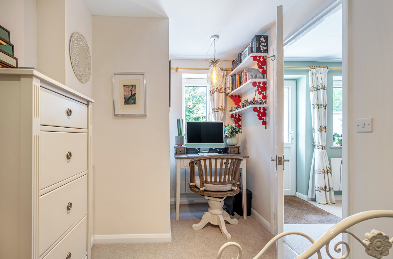 The front entrance opens directly to a well appointed living room which leads to a modern kitchen with well appointed stylish metro tiled walling and wall mounted units and built in appliances including a dishwasher, washing machine, oven, hob & extractor fan. The bathroom is fitted with high quality ceramic ware and chrome fittings alomg with a shower over the bath. To complete the accomodation there is a double bedroom with sung nook study and on the exterior a convenient storage unit.