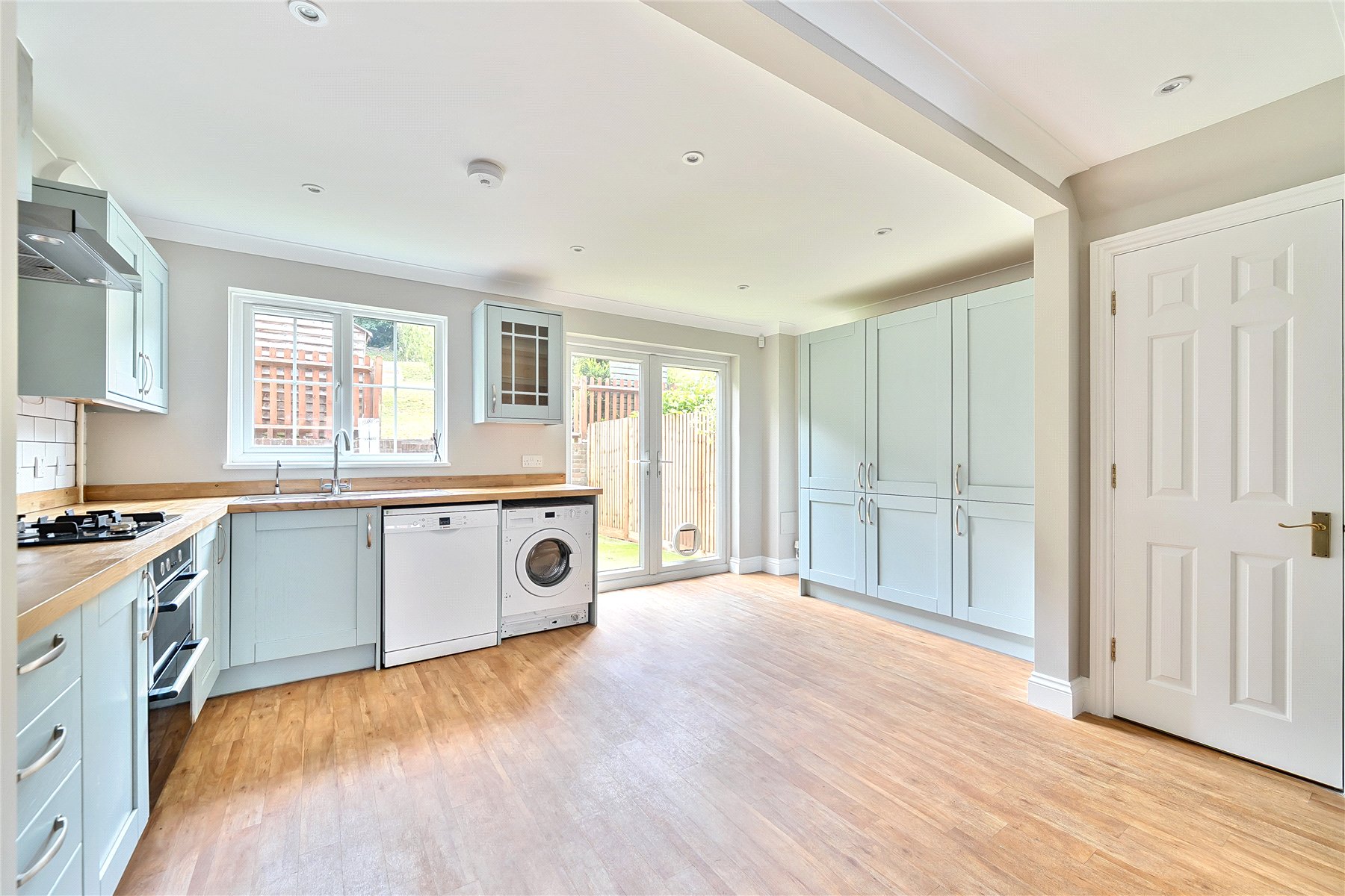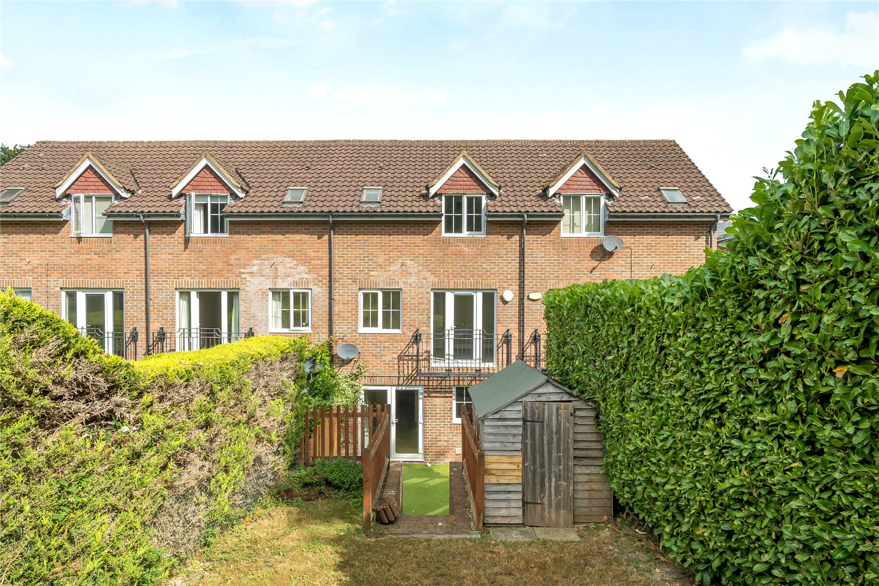 Beautifully presented and maintained to an exceptional standard throughout, this impressive four-bedroom townhouse offers spacious and versatile living accommodation, along with the rare benefit of off-street parking, all nestled in the heart of Haslemere a vibrant and sought-after market town.Set over three well-planned floors, this thoughtfully designed home is ideal for modern family living. Upon entering the welcoming hallway, you are led into a generously sized open-plan living space that extends from the front to the rear of the property. This stylish and functional area features a contemporary fitted kitchen complete with high-quality appliances, including a fridge freezer, seamlessly flowing into a dining area with double doors that open out onto the south-facing rear garden. Beyond the dining space, the comfortable sitting area offers the perfect setting for entertaining guests or relaxing with the family.The first floor hosts two spacious double bedrooms, with the principal bedroom overlooking the rear garden and enjoying the added charm of a Juliet balcony. A fully refitted, modern shower room serves this floor, finished to a high specification.The top floor offers two additional generously proportioned double bedrooms, along with a sleek, refitted family bathroom, making this an ideal layout for families, guests, or those needing space to work from home.Externally, the property continues to impress. The rear garden is a fantastic size, predominantly laid to lawn and bathed in sunlight thanks to its desirable south-facing orientation. Enclosed by mature hedging, it provides a private and tranquil outdoor space with ample potential to add a studio, office, or workshop, subject to any necessary consents. A timber garden shed offers practical storage, and to the front of the property there are two private off-street parking spaces.This superb home combines location, space, and quality to offer an outstanding opportunity in one of Surrey's most desirable towns.