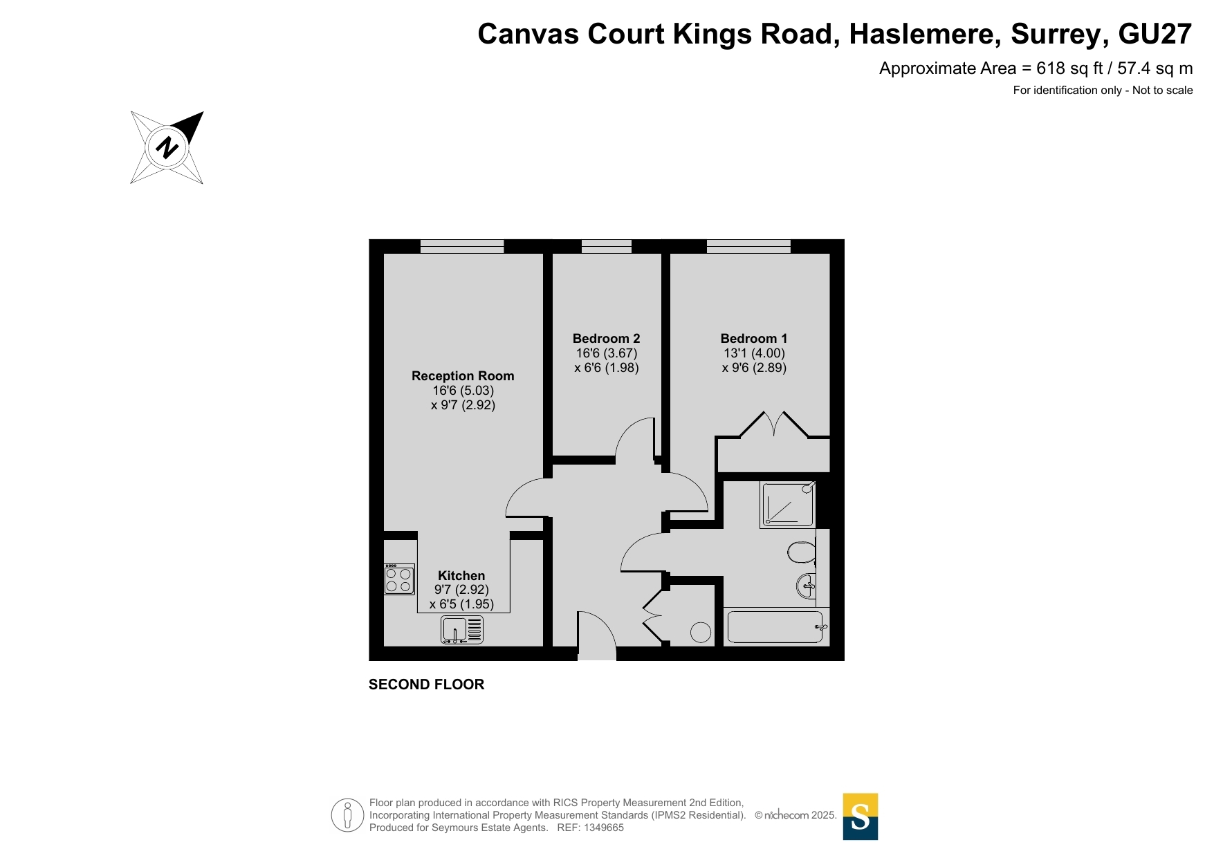 Set within the attractive and well-maintained Canvas Court development, this spacious two-bedroom second floor apartment offers bright interiors, generous proportions, and the benefit of allocated parking in a highly convenient central Haslemere location.The accommodation extends to approximately 618 sq ft and is well laid out, creating a practical and comfortable home. The welcoming entrance hall, fitted with useful storage cupboards, provides access to all principal rooms. The 16'6 reception room is a particular highlight a versatile living and dining space with a bright outlook and neutral décor, making it easy to move straight into. From here, an archway leads through to the modern fitted kitchen, which is well-appointed with a range of wall and base units, integrated oven and hob, and space for appliances, all finished in a contemporary style.The apartment offers two bedrooms. The principal bedroom is a generous 13'1 x 9'6 and includes built-in wardrobes, while the second bedroom could serve as a comfortable single room, guest bedroom, or ideal home office. Both rooms are presented in neutral tones with plenty of natural light.The bathroom is smartly designed with both a full-sized bath and separate shower cubicle, as well as a WC and pedestal basin perfect for modern living.Externally, the property benefits from allocated parking within a covered area beneath the development, along with well-kept communal areas and secure entry.Located on Kings Road, Canvas Court is ideally positioned within easy reach of Haslemere mainline station, providing fast and regular services to London Waterloo, and the town centre, which offers a wide range of shops, restaurants, and amenities. The area is also surrounded by beautiful countryside, with the South Downs National Park and National Trust commons nearby, making it a superb base for both commuters and those who enjoy the outdoors.