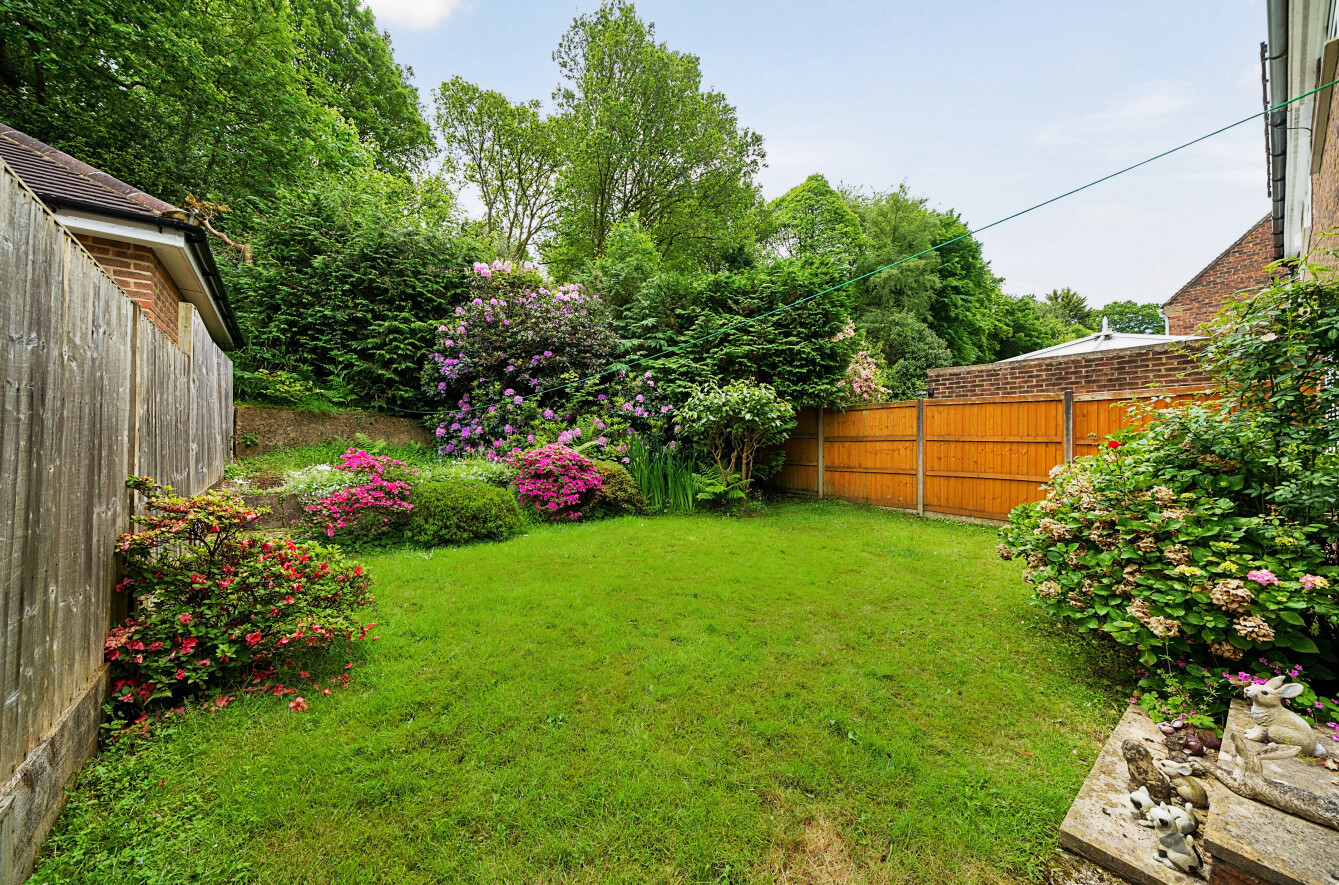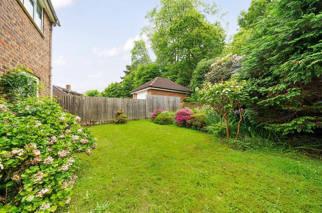 The rear garden, which enjoys a southerly aspect, is mainly laid to lawn and features both flat and tiered sections. The front of the house offers ample off-street parking and includes a single garage.