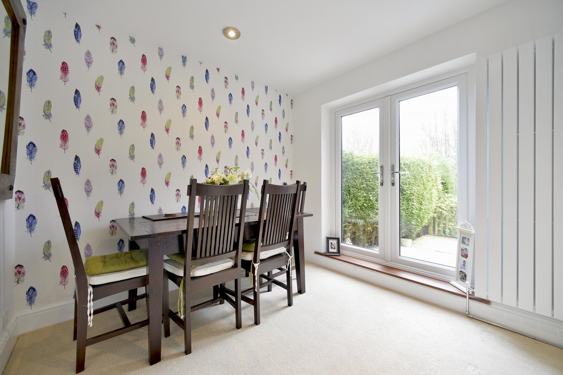 The ground floor offers a welcoming and versatile layout. The living room, featuring an open fire, creates a cozy and inviting atmosphere, perfect for relaxing on cooler evenings. The dining room is a bright and airy space, with double-glazed doors that open onto rear decking, seamlessly blending indoor and outdoor living. The good-sized modern kitchen is well-appointed, with ample eye and base-level units providing excellent storage and workspace. A separate utility room and a convenient cloakroom complete the ground floor accommodation, adding practicality to this charming home.