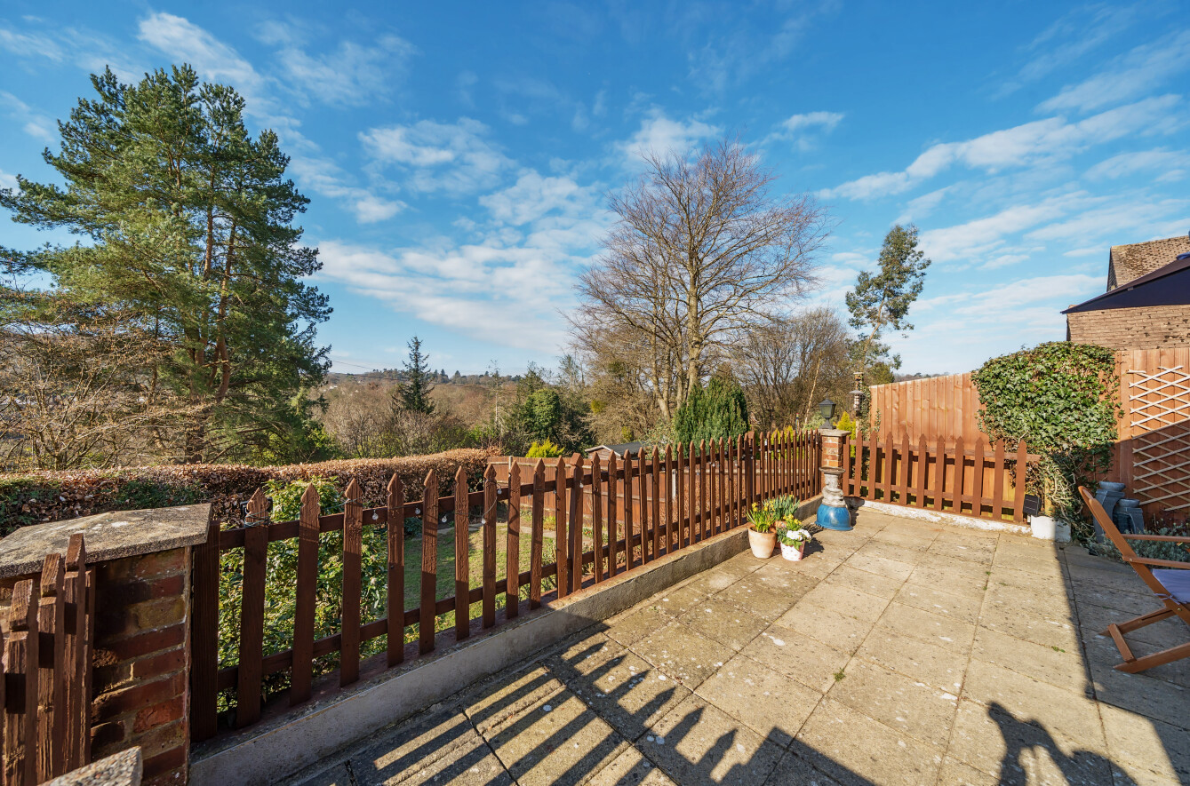 Outside, the front of the property offers a hard-standing area providing ample parking, with steps leading down to the front door. To the side is a sizable garden area, presenting further extension potential (STPP). The rear south facing garden includes a spacious patio and steps leading down to a lawned area, perfect for outdoor enjoyment.