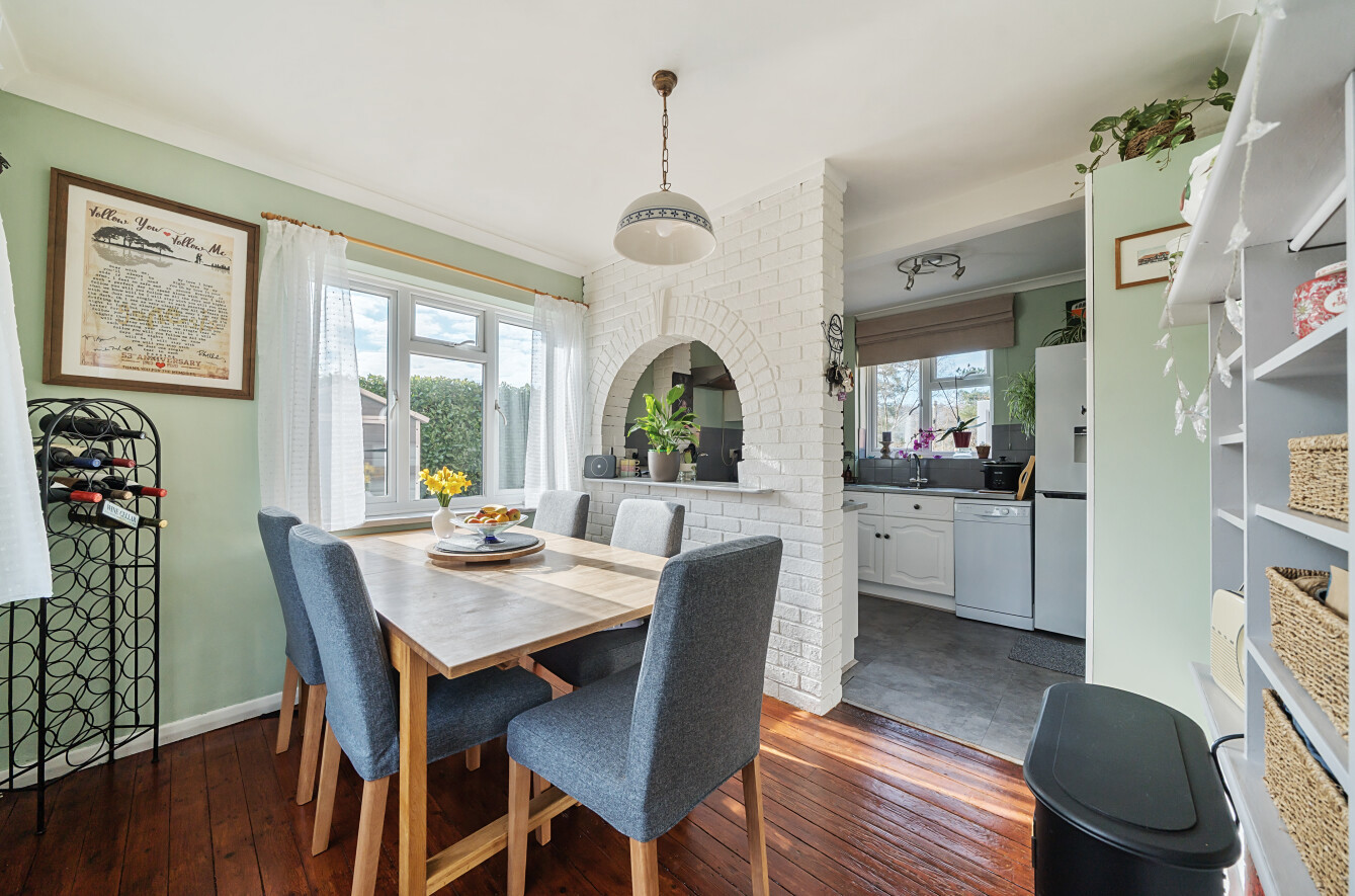 An attractive semi-detached family home boasting stunning rear views and offering potential for extension (subject to planning permission). Ideally situated on the edge of town, this property enjoys a highly convenient location.Lovingly maintained by its current owners, the home exudes a warm and inviting atmosphere. The ground floor features an entrance hall leading to a bright dual-aspect living room with a charming feature fireplace. Another door off the hallway opens into a spacious triple-aspect kitchen/dining room offering a semi open plan entertaining space. From here, you access a rear lobby/utility area and a downstairs cloakroom.