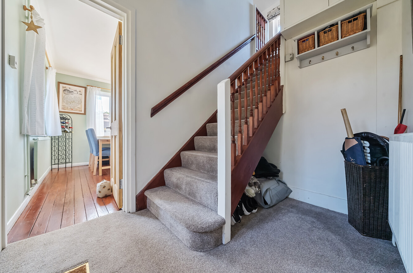 Upstairs, the landing leads to three double bedrooms with bedrooms one and two boasting built in storage. A well-appointed family bathroom services all three bedrooms.
