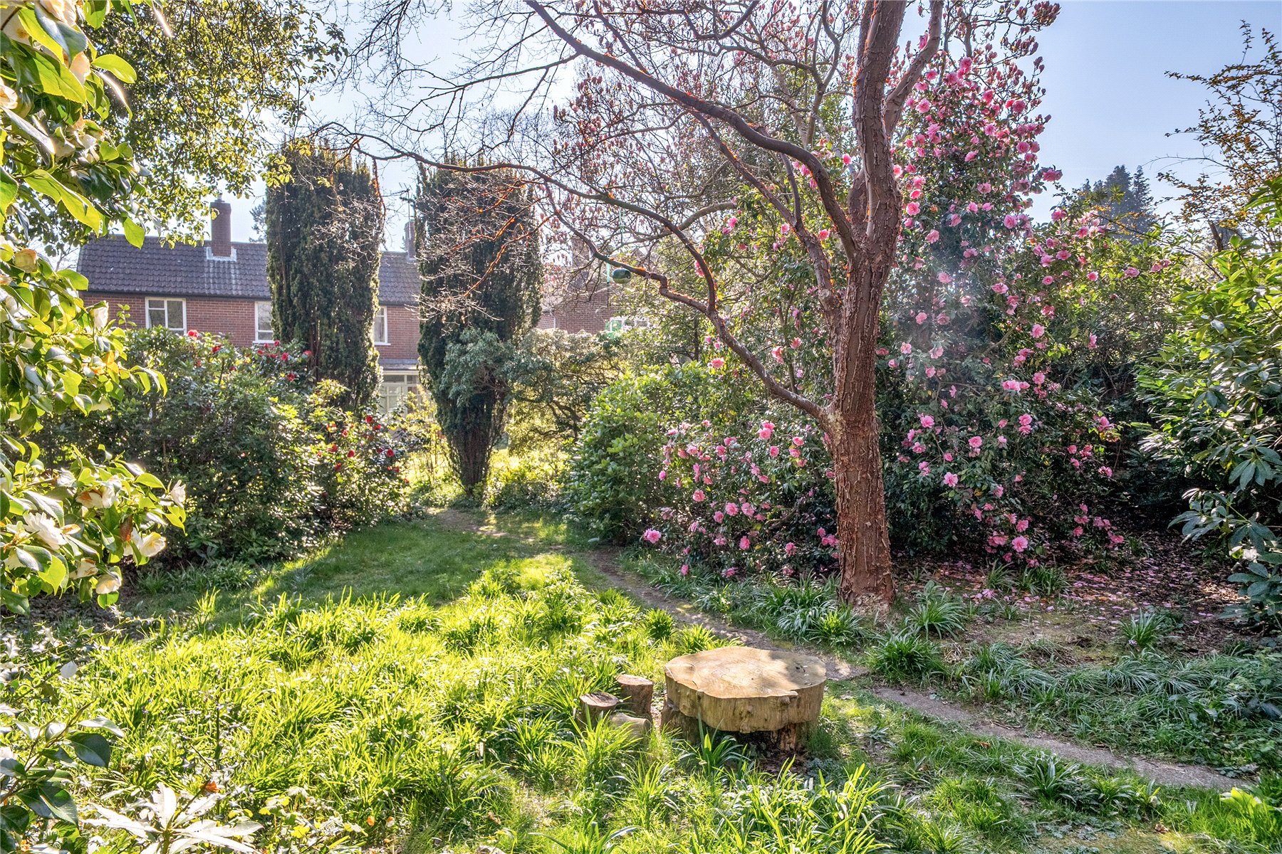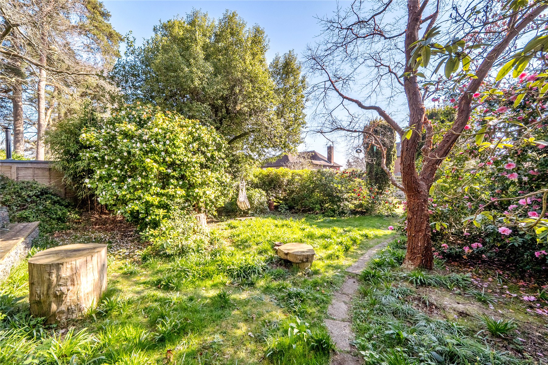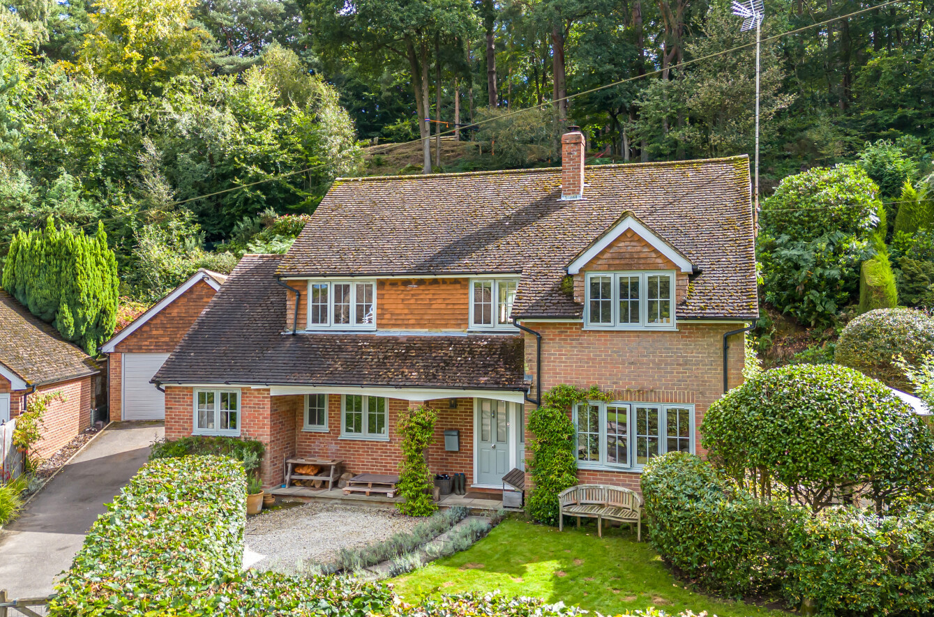The enchanting rear garden unfolds in two captivating sections: a flat, grassy area perfect for leisurely afternoons or family gatherings, and a secluded wooded gardena tranquil hideaway that promises peace and a hint of adventure. Beyond this secluded paradise, local tennis courts and a recreation ground await, while the breathtaking National Trust beauty spot of Blackdown is within easy reach. A convenient footpath at the rear offers direct access to Haslemere Recreation Ground and the High Street, with the station just a short stroll further.