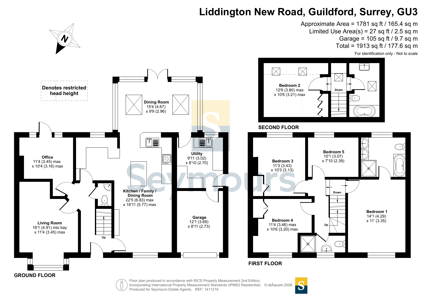 Welcome to 34 Liddington New Road, a beautifully presented five-bedroom family home, thoughtfully extended and enhanced by the current owners over their 30 years of ownership. The result is a substantial and versatile home arranged over three floors, perfectly suited to a growing family.The entrance hall provides a warm welcome and central access to all the principal reception spaces, with the added benefit of a useful downstairs cloakroom. To the front sits a cosy living room with feature fireplace, ideal for quieter evenings, along with a separate office/family room behind, offering flexibility for home working or additional living space.To the right side of the property lies the true heart of the home, a superb open-plan kitchen, living and dining area, spanning from the front to the rear of the house, designed with contemporary family living in mind. This impressive space combines practicality with style, offering an abundance of storage, complemented with granite worktops and a central island perfect for informal dining or preparing family meals. High-quality integrated appliances include double ovens, a butler sink and further built-in features. The dining area enjoys views over the garden and provides a light, airy setting for entertaining, while the family space is thoughtfully arranged around a bespoke media unit, ideal for relaxed evenings together. A separate utility room offers further storage and access to the integral single garage.The first floor comprises four generously sized double bedrooms and a modern family shower room. The principal bedroom benefits from its own en suite shower room with twin "his and hers" sinks. Stairs from the landing lead to the top floor, where a fifth bedroom provides excellent additional accommodation, complemented by a further family bathroom, ideal for guests, teenagers or extended family. In total, the property benefits from three bathrooms in addition to the downstairs cloakroom, ensuring excellent practicality for family life.