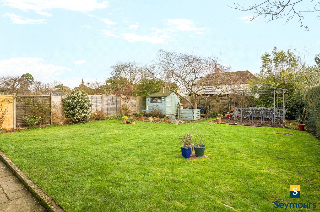 Outside, the rear garden is well established and enjoys a high degree of privacy, bordered by mature shrubs and trees. Predominantly laid to lawn and enhanced by seasonal planting that brings colour throughout the year, the garden benefits from a favourable south-westerly aspect, ensuring plenty of sunshine throughout the day. A gravel patio area sits adjacent to the house, providing an ideal space for outdoor dining and entertaining. Side access leads to the front of the property, where driveway parking is complemented by a further lawned garden.