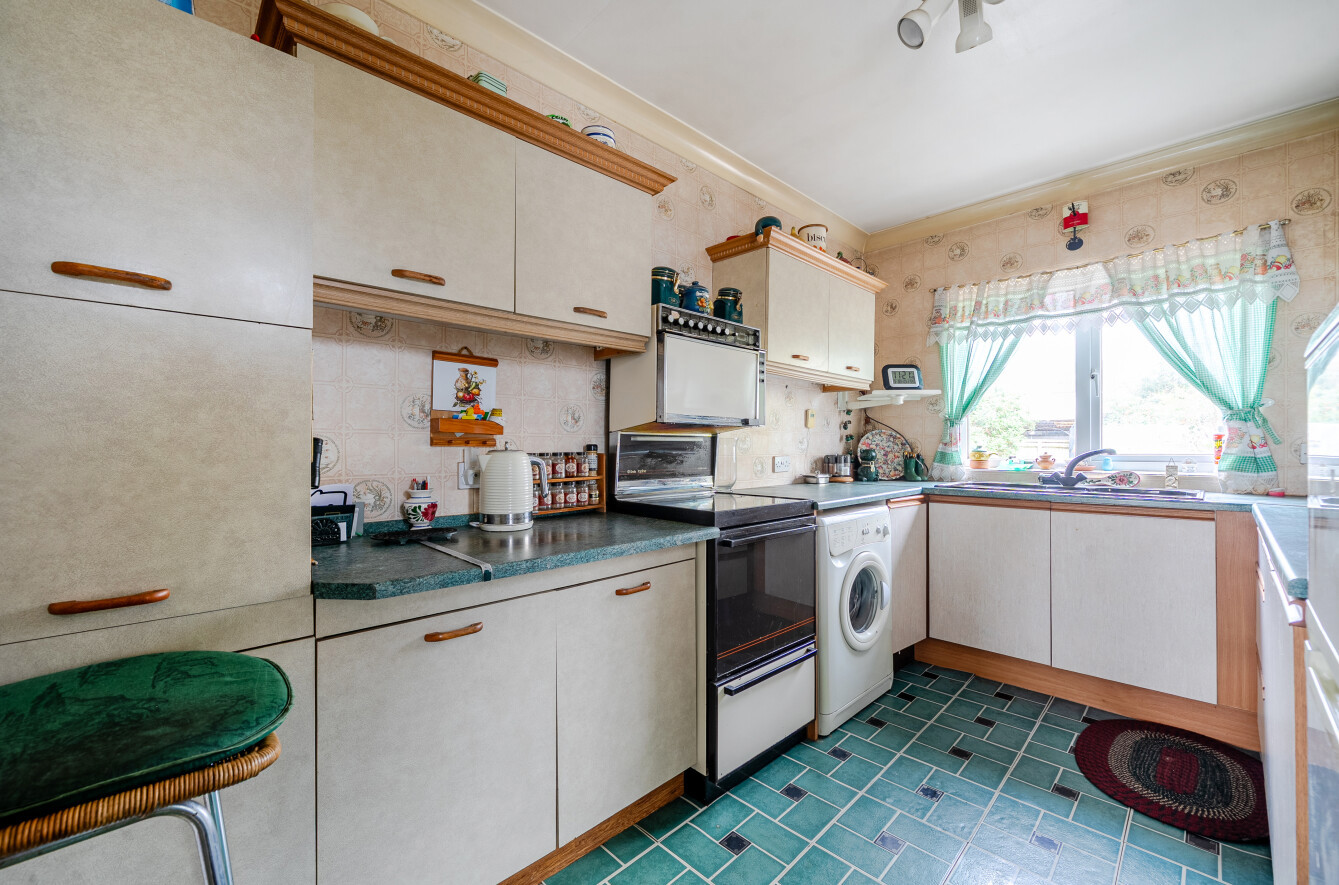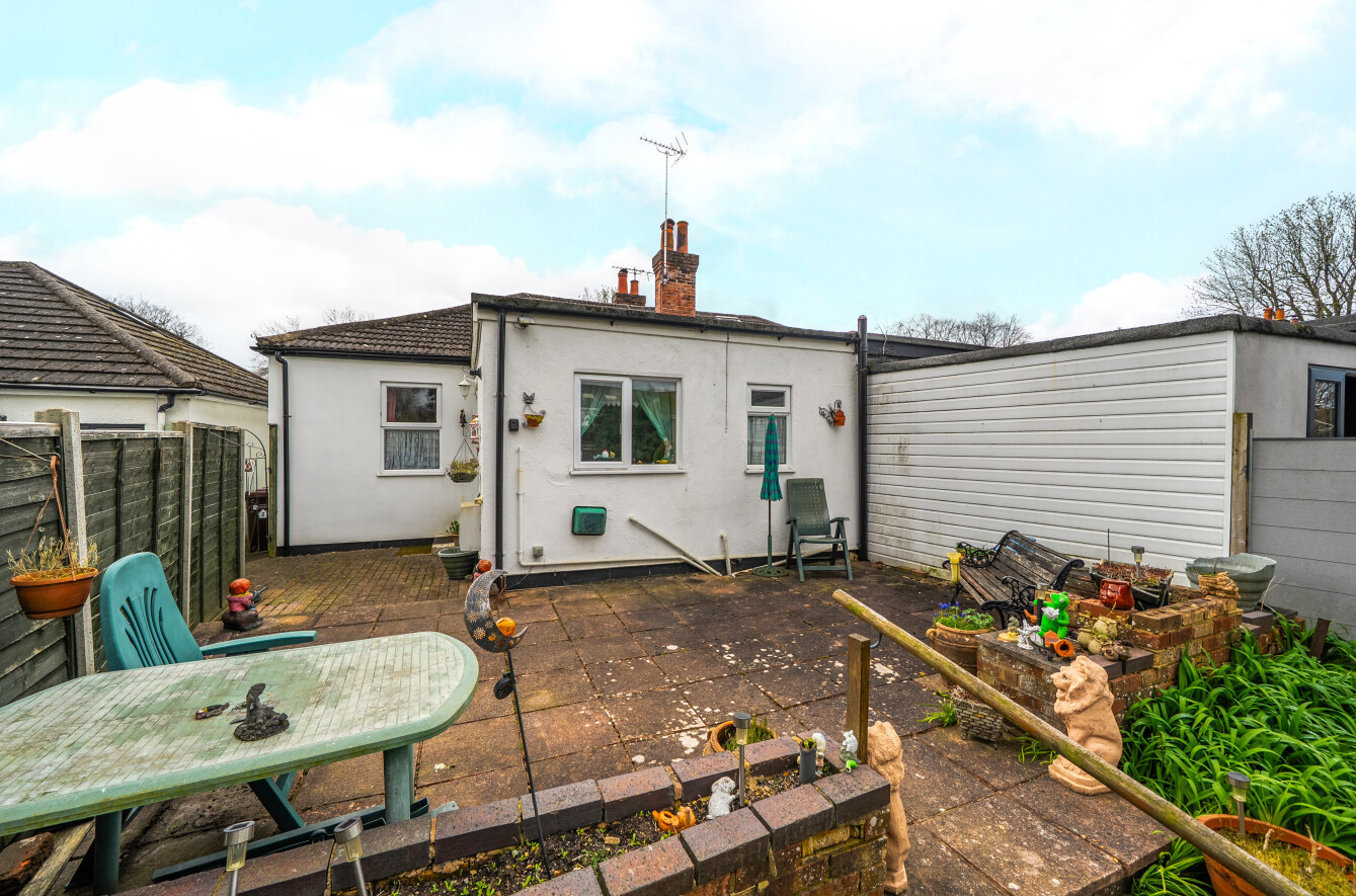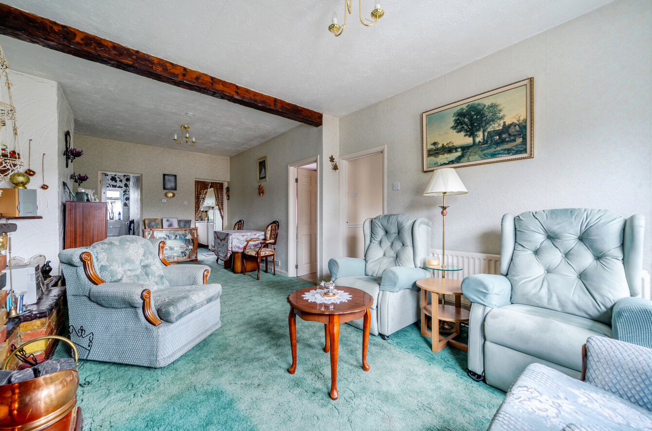 This charming single-storey bungalow offers well-proportioned and versatile living space, ideal for those seeking a comfortable home with scope to modernise and personalise.The property opens into a welcoming entrance leading through to a generous, light-filled sitting room. This cosy yet spacious living area features a characterful brick fireplace and large windows that allow natural light to pour in, creating a warm and inviting atmosphere. The layout flows seamlessly into a dining area, providing an ideal space for both everyday living and entertaining.The kitchen is arranged in a practical galley style, offering ample storage and worktop space, along with room for appliances. While functional, it presents an excellent opportunity for updating to suit modern tastes.There are well-sized bedrooms, including a spacious principal bedroom with fitted wardrobes, offering plenty of storage. Additional rooms provide flexibility for use as guest accommodation, a home office or hobby space.The bathroom is fitted with a bath, separate shower, wash basin and WC, again offering scope for refurbishment.Externally, the property benefits from a mature front garden with established planting and a driveway providing off-street parking. To the rear, a good-sized garden features a patio seating area, lawn, greenhouse and various outbuildings, ideal for keen gardeners or those looking to create an outdoor retreat. The garden offers both privacy and potential for further landscaping.Overall, the home is well-maintained but would benefit from modernisation, making it an excellent opportunity for buyers looking to add value and create a home tailored to their own style.Situated in a well-established residential area, the property enjoys a peaceful setting while remaining conveniently close to local amenities. Nearby shops, schools and everyday services are within easy reach, making it a practical choice for a range of buyers.The area benefits from good transport links, providing straightforward access to surrounding towns and city centres, while also offering nearby green spaces and countryside for outdoor enjoyment.This is a location that balances convenience with a quieter, community-focused environment, ideal for those looking to enjoy both accessibility and a more relaxed pace of living.