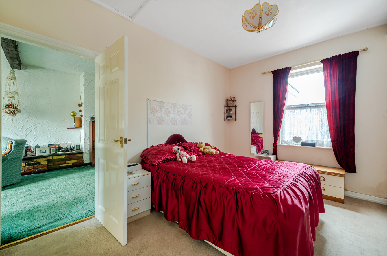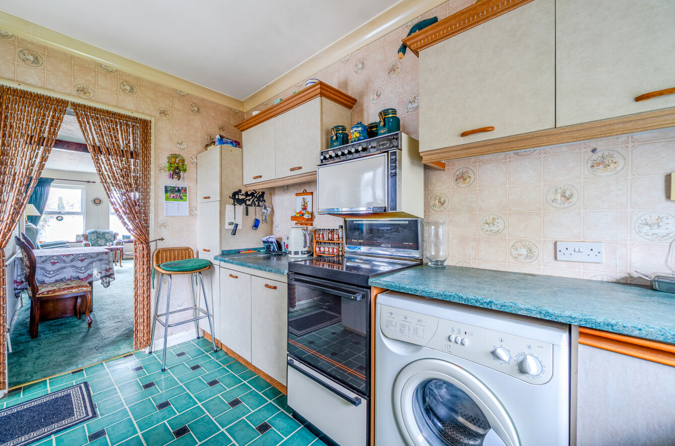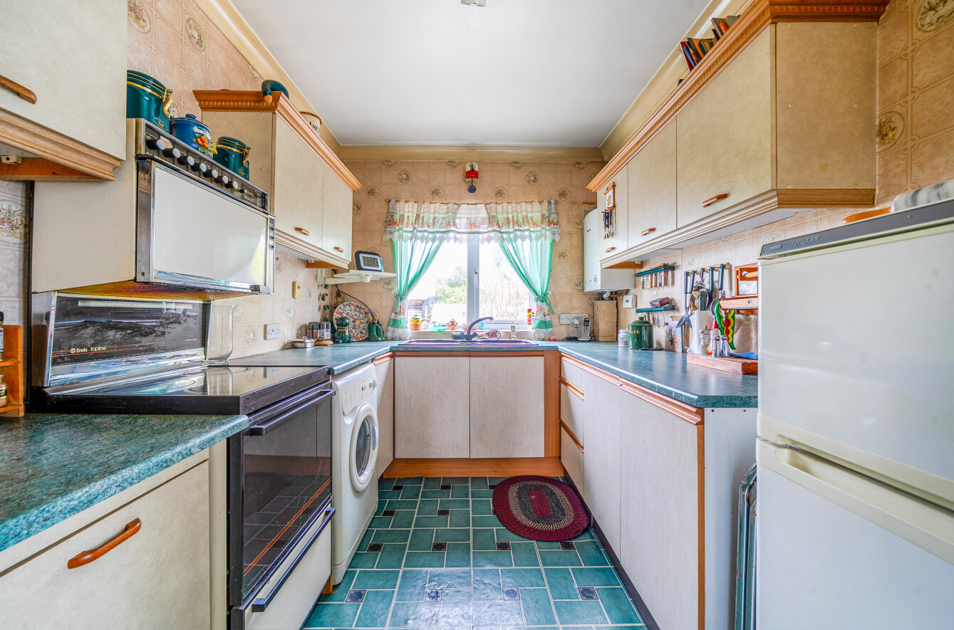This charming single-storey bungalow offers well-proportioned and versatile living space, ideal for those seeking a comfortable home with scope to modernise and personalise.The property opens into a welcoming entrance leading through to a generous, light-filled sitting room. This cosy yet spacious living area features a characterful brick fireplace and large windows that allow natural light to pour in, creating a warm and inviting atmosphere. The layout flows seamlessly into a dining area, providing an ideal space for both everyday living and entertaining.The kitchen is arranged in a practical galley style, offering ample storage and worktop space, along with room for appliances. While functional, it presents an excellent opportunity for updating to suit modern tastes.There are well-sized bedrooms, including a spacious principal bedroom with fitted wardrobes, offering plenty of storage. Additional rooms provide flexibility for use as guest accommodation, a home office or hobby space.The bathroom is fitted with a bath, separate shower, wash basin and WC, again offering scope for refurbishment.Externally, the property benefits from a mature front garden with established planting and a driveway providing off-street parking. To the rear, a good-sized garden features a patio seating area, lawn, greenhouse and various outbuildings, ideal for keen gardeners or those looking to create an outdoor retreat. The garden offers both privacy and potential for further landscaping.Overall, the home is well-maintained but would benefit from modernisation, making it an excellent opportunity for buyers looking to add value and create a home tailored to their own style.Situated in a well-established residential area, the property enjoys a peaceful setting while remaining conveniently close to local amenities. Nearby shops, schools and everyday services are within easy reach, making it a practical choice for a range of buyers.The area benefits from good transport links, providing straightforward access to surrounding towns and city centres, while also offering nearby green spaces and countryside for outdoor enjoyment.This is a location that balances convenience with a quieter, community-focused environment, ideal for those looking to enjoy both accessibility and a more relaxed pace of living.