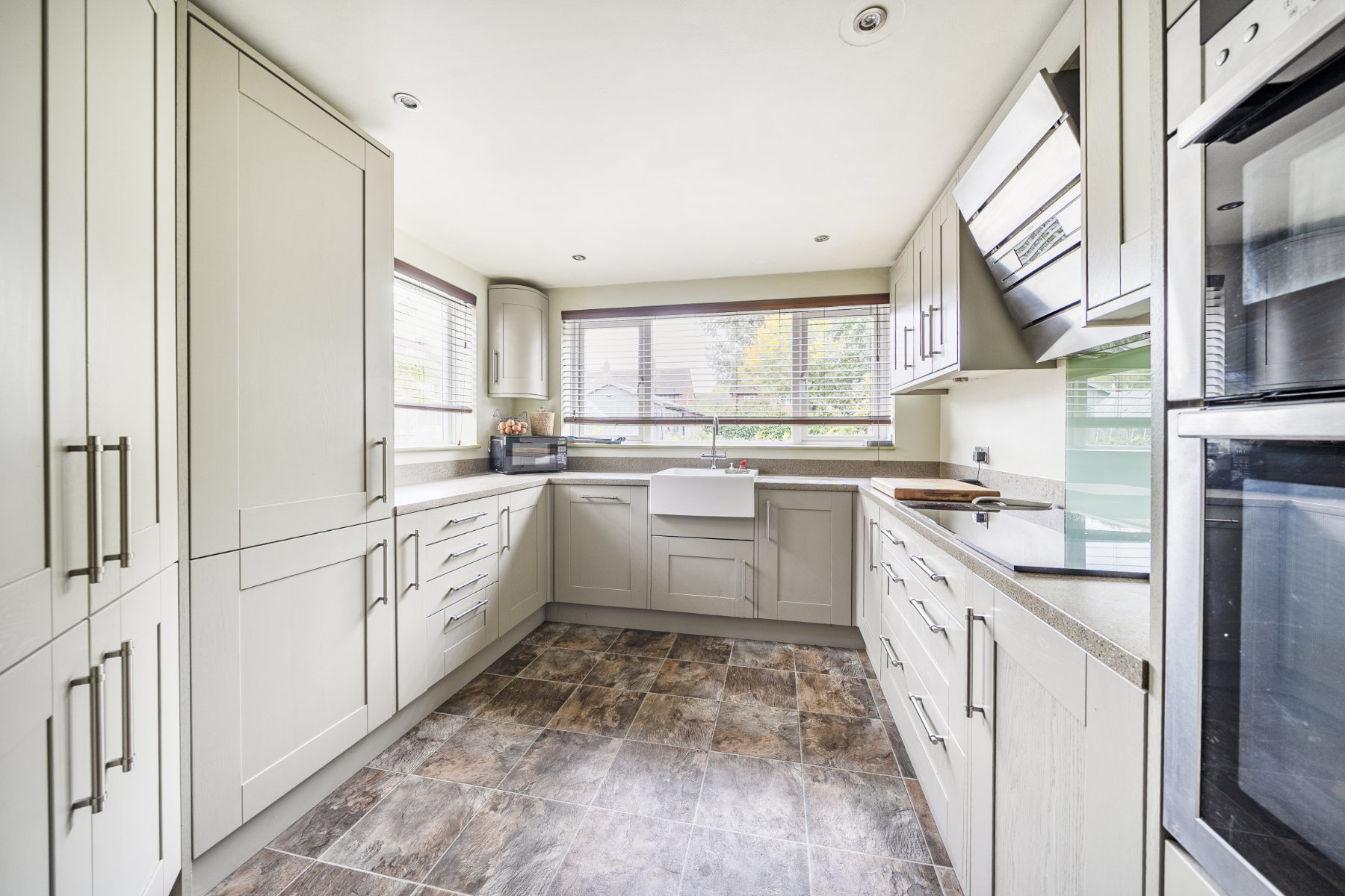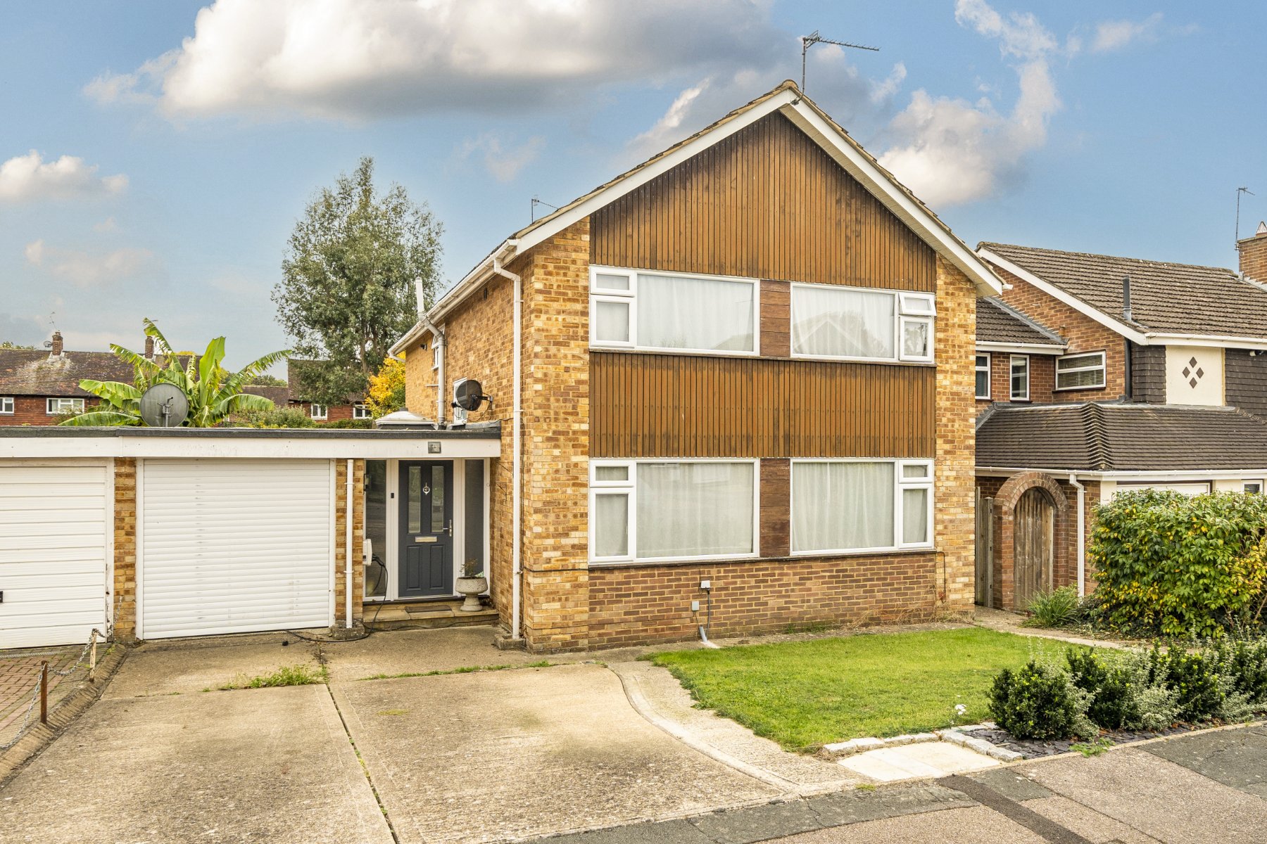 This impressive property is situated in the sought-after Great Oaks Park area of Guildford, offering excellent access to highly regarded local schools and amenities. With driveway parking and an attached garage, it provides both practicality and comfort for modern family living.Inside, the spacious living room features original wood flooring laid in a brick wood flooring layout, large windows that flood the room with natural light, and ample space for relaxation and entertaining. The kitchen is fitted with classic shaker-style cabinets, offering generous cupboard and drawer space with integrated appliances, and enjoys plenty of light thanks to its dual-aspect windows. Adjacent to this is