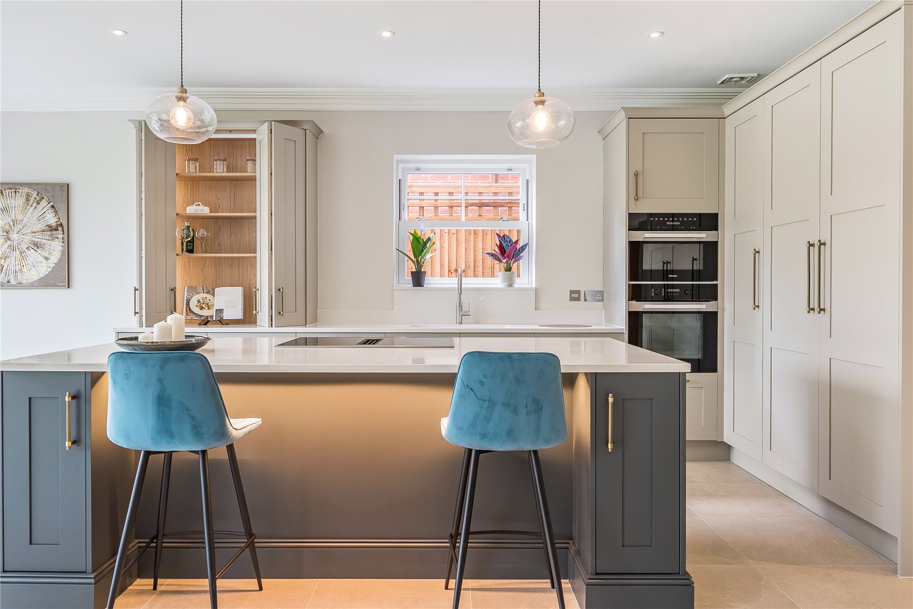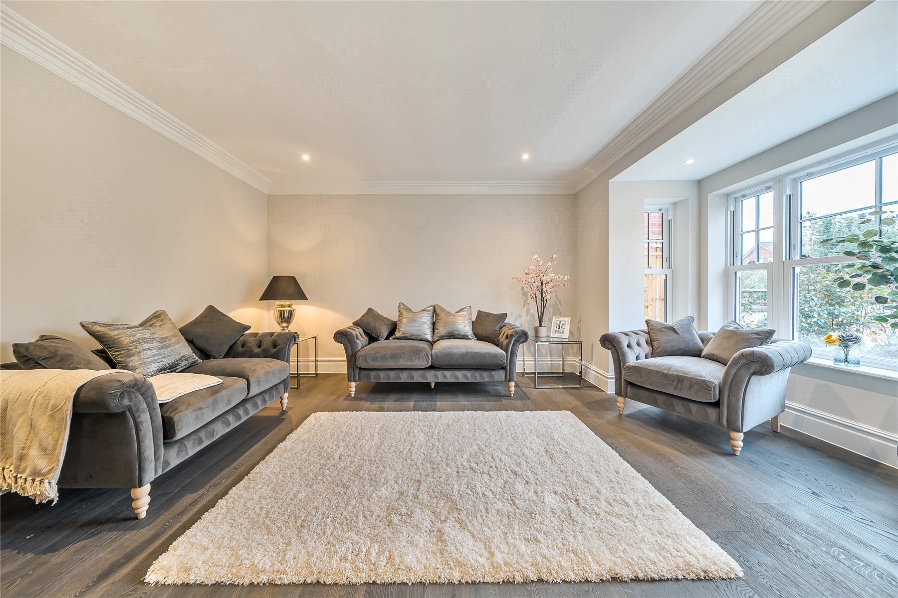Outside the property is equally impressive. A private driveway provides off-street parking for several vehicles, along with a garage and an electric car charger. The generous rear garden is laid mainly to lawn and bordered by mature planting, offering a private and attractive setting for outdoor entertaining, childrens play or simply enjoying the surroundings.