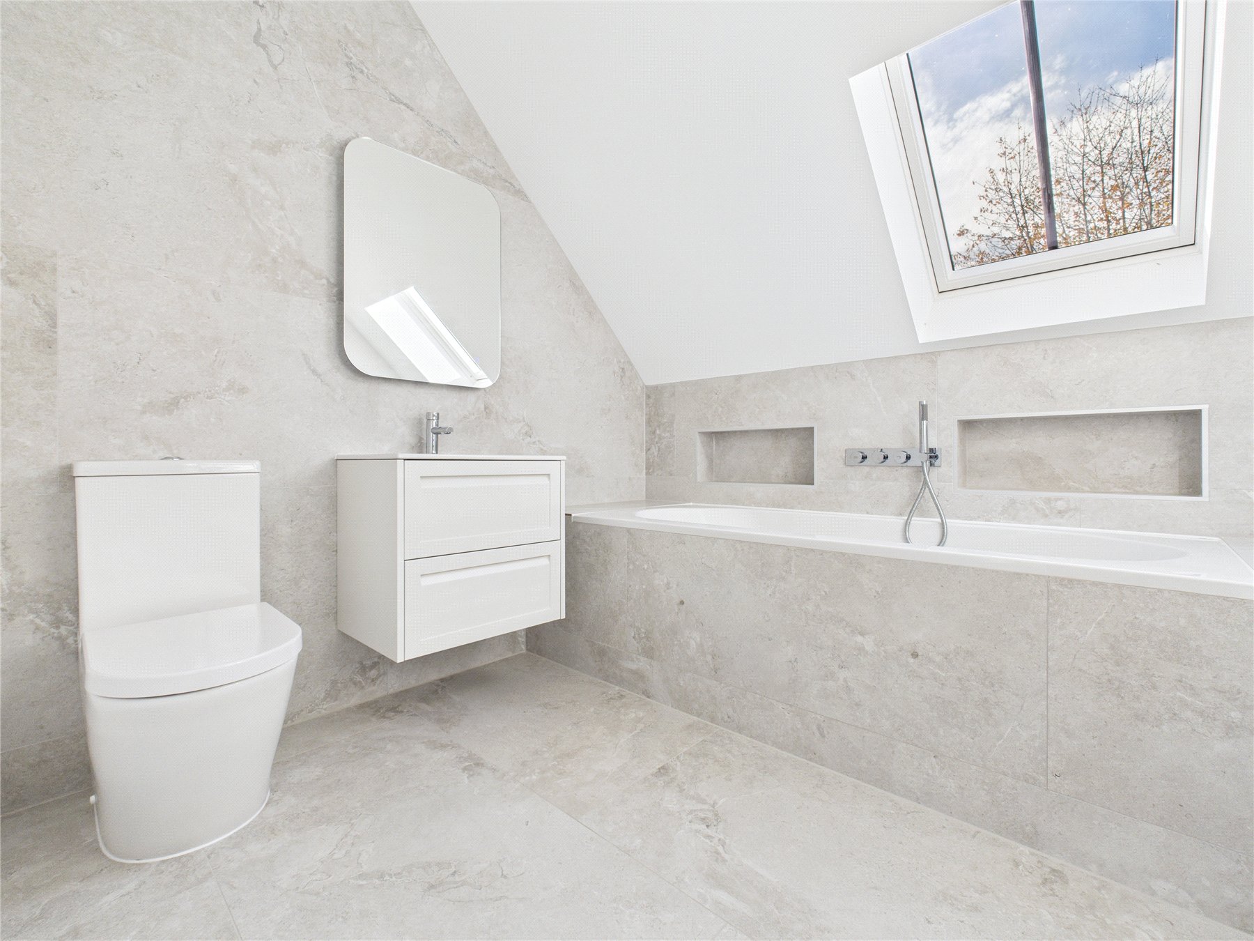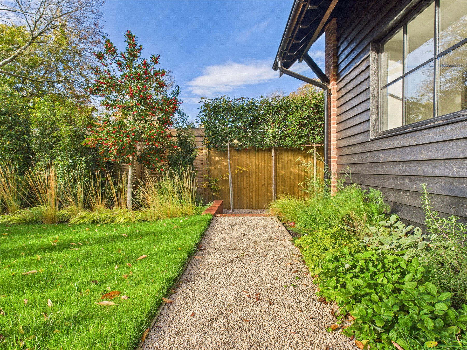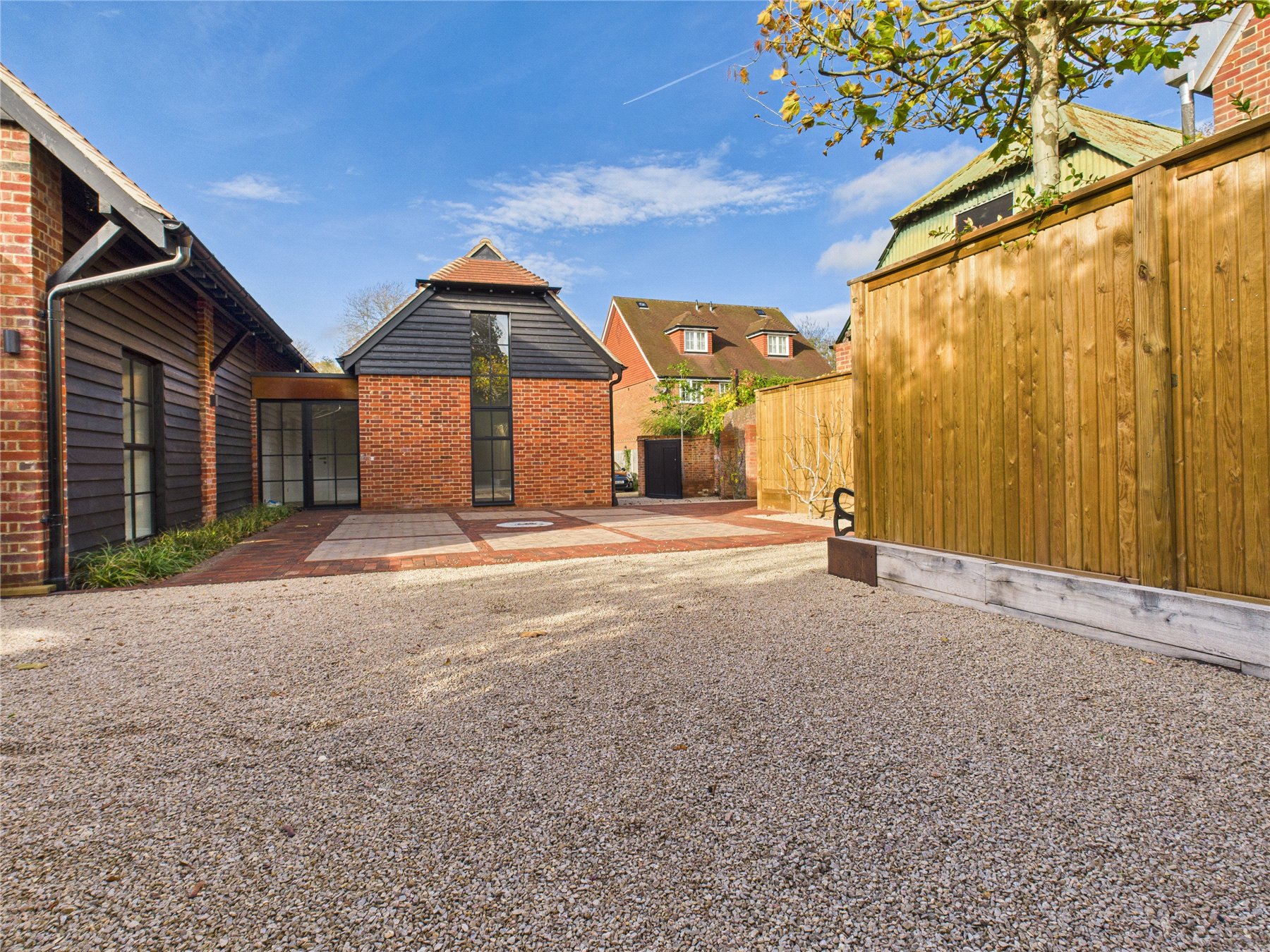 Tucked away in a tranquil, semi-rural setting on the outskirts of Chilworth, this newly constructed detached residence is a masterclass in contemporary design and modern efficiency. Built to an exceptionally high standard and thoughtfully planned throughout, the property blends light, space, and sustainability to create a truly special homeideal for downsizers, retirees, London leavers, upsizers, or those seeking an elegant countryside retreat or second home.From the moment you enter, there's a sense of calm and understated sophistication. The welcoming hallway opens via double doors into the magnificent Chapel Rooma striking 20ft dual-aspect space with vaulted ceilings and large skylights that flood the room with natural light. Designed to evoke a sense of serenity and grandeur, it's a wonderfully versatile area that can serve as a main sitting room, studio, or additional bedroom. Adjoining this is a beautifully appointed shower room with a walk-in cubicle, basin, and WC, offering flexibility for guests or ground-floor living.An inner hallway with fitted storage leads into the heart of the homean expansive, open-plan living space designed for modern life. The dining area flows effortlessly into a generous family or study area, with three sets of bi-fold doors and two floor-to-ceiling windows connecting the interior to the secluded garden beyond. This inspiring space is further enhanced by the superb Howdens premium kitchen, fitted with an extensive range of units and elegant Quartz worktops. Bosch appliances include a double oven and induction hob with extractor, complemented by a butler sink and integrated dishwasher and fridge/freezer. A separate utility room with additional sink and space for laundry appliances provides external access to the garden.Upstairs, two spacious double bedrooms are set gracefully into the eaves, each bright and welcoming thanks to the combination of traditional windows and skylights. The principal bedroom features a luxurious ensuite shower room with wet roomstyle double shower, basin, WC, and skylight, while the second bedroom benefits from its own private bathroom complete with bath, handheld shower, basin, WC, and skylight.Attention to detail and comfort is evident throughout, with Skara Oak Amtico flooring and underfloor heating extending across the ground floor. The property's eco credentials are particularly impressive, featuring solar panels on the roof that generate electricity and an efficient air source heat pump providing sustainable heatingfuture-proofing the home and ensuring excellent energy performance for years to come.Outside, double gates open to a generous brick-paved courtyard offering ample off-street parking and an electric vehicle charging point. The rear garden is secluded and beautifully landscaped, with mature trees, a lush lawn, and a limestone terrace that creates a perfect setting for outdoor dining or quiet relaxation.Offered for sale with no onward chain and a New Home Warranty, this remarkable property enjoys a very low flood risk and sits within the historic Conservation Area of the Chilworth Gunpowder Mills. It lies within Green Belt land, yet is not in an Area of Outstanding Natural Beauty and is not listed. Just a short three-minute drive from Chilworth and within easy reach of Guildford town centre, it offers the perfect balance of countryside tranquillity and convenient accessa home that's as practical and sustainable as it is beautiful.