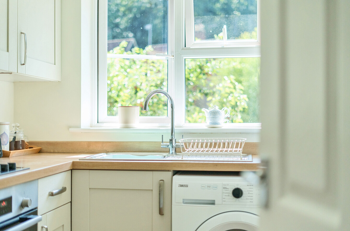 - Modern fitted kitchen with shaker-style cabinetry and integrated appliances