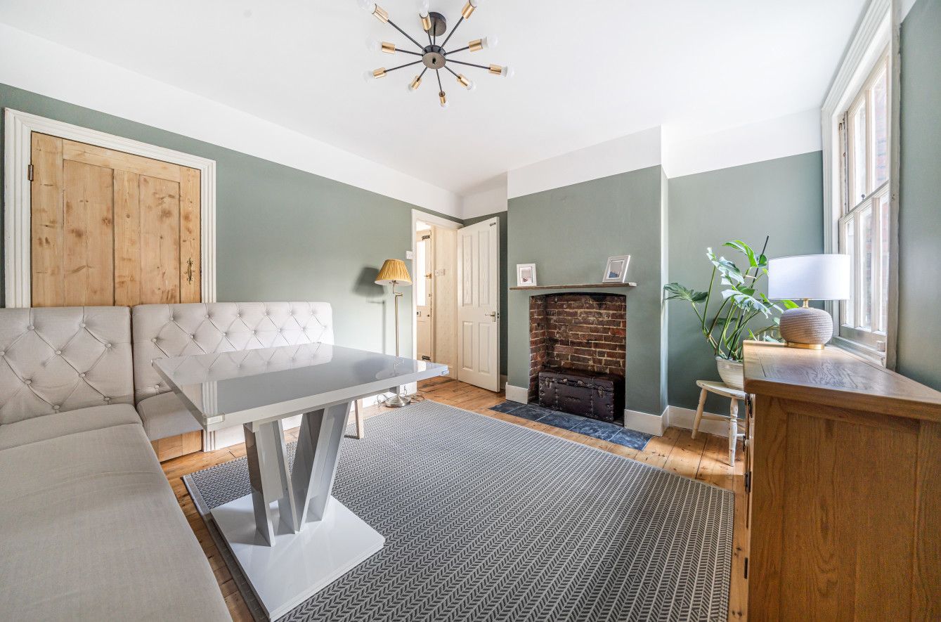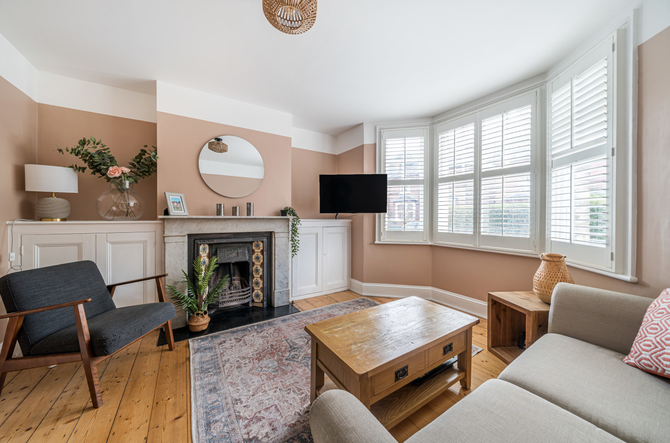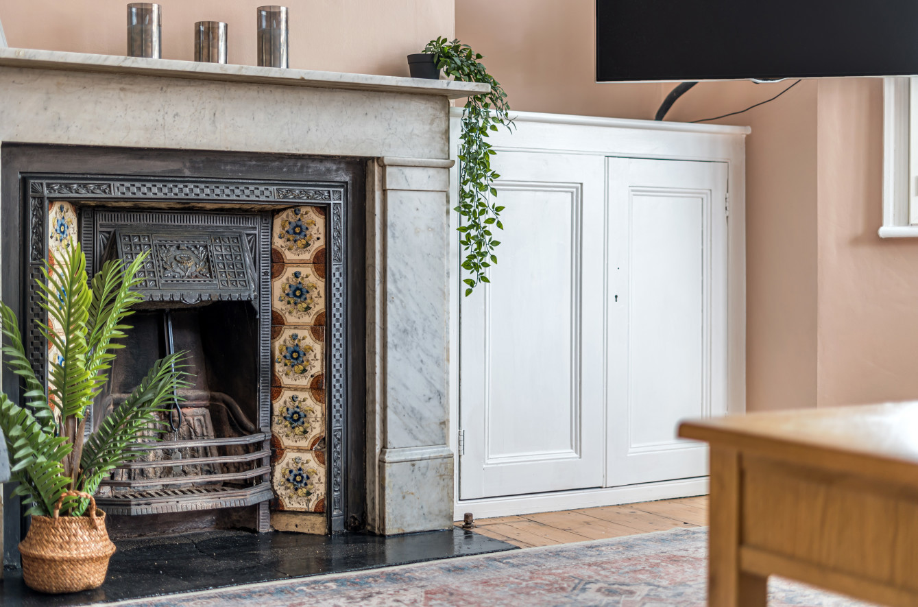 - Inviting sitting room with open fireplace and ornate cast iron surround